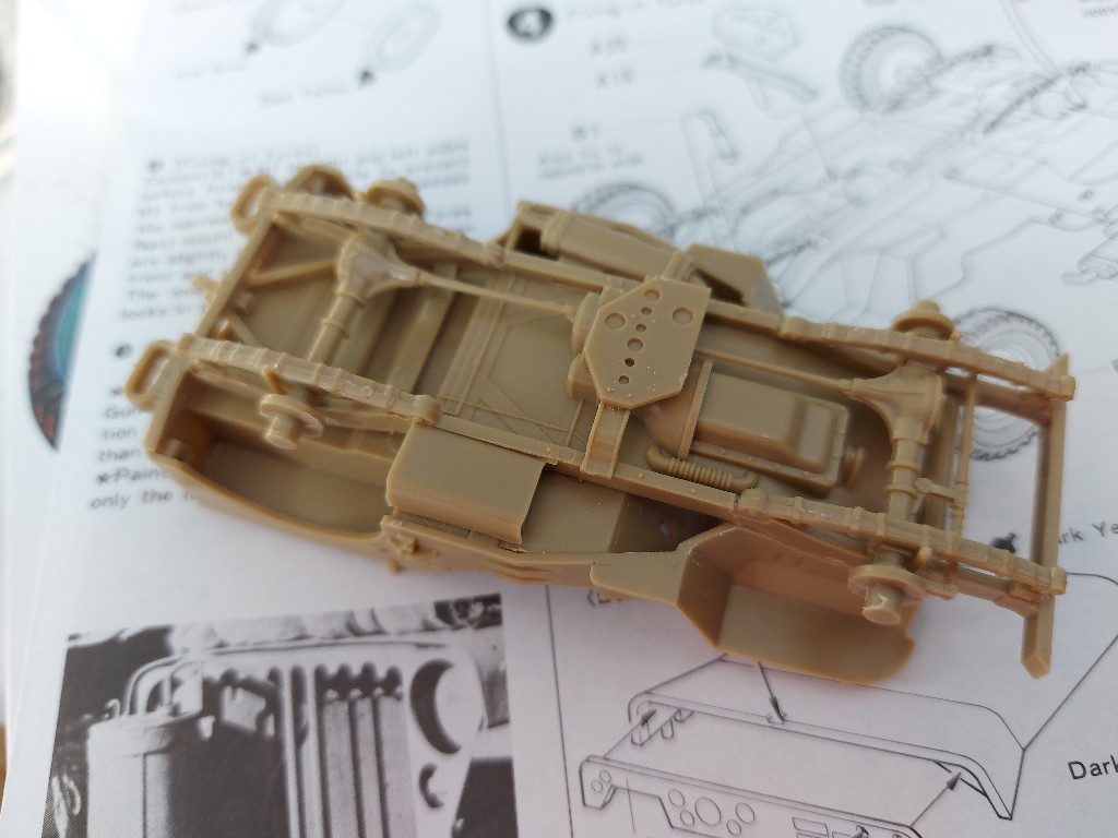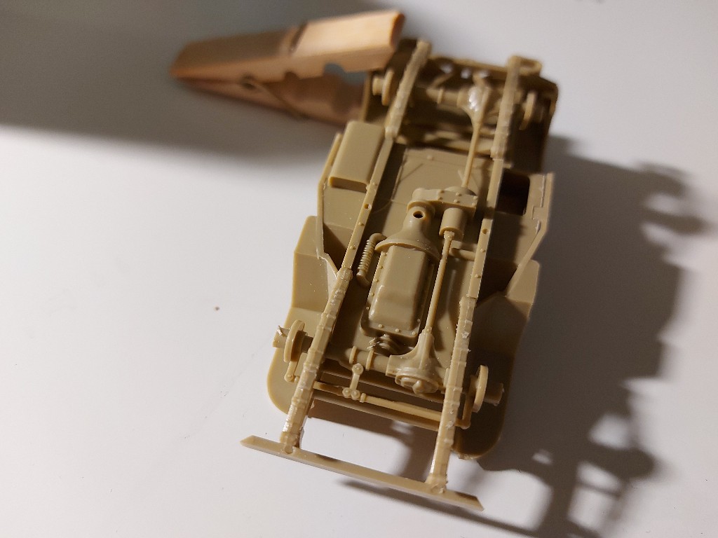 Es ging heute mit dem ersten Bauschritt am Tamiya Jeep los. Die Fahrzeugwanne wurde ersteinmal zusammen geklebt.