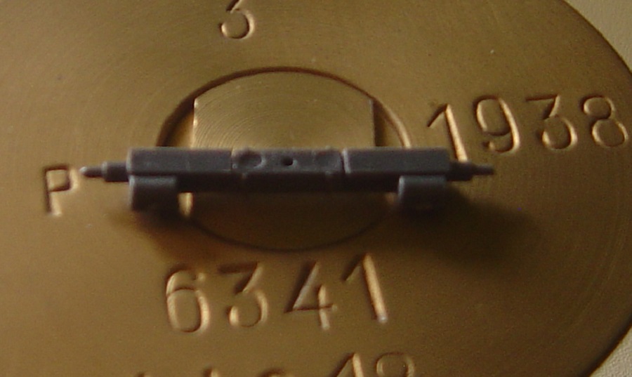 Ein Seitenteil vom "Rohr" mit dem Öffnerhebel ( für den Verschluß ). Hier habe ich den Stift verlängert, das er nun gekontert beweglich bleibt. Somit kann das Rohr später zum Laden geöffnet werden. Ich weiß Spielkind! Aber gerade dieser Ladevorgang ist ein interessantes Detail an diesem Geschütz.