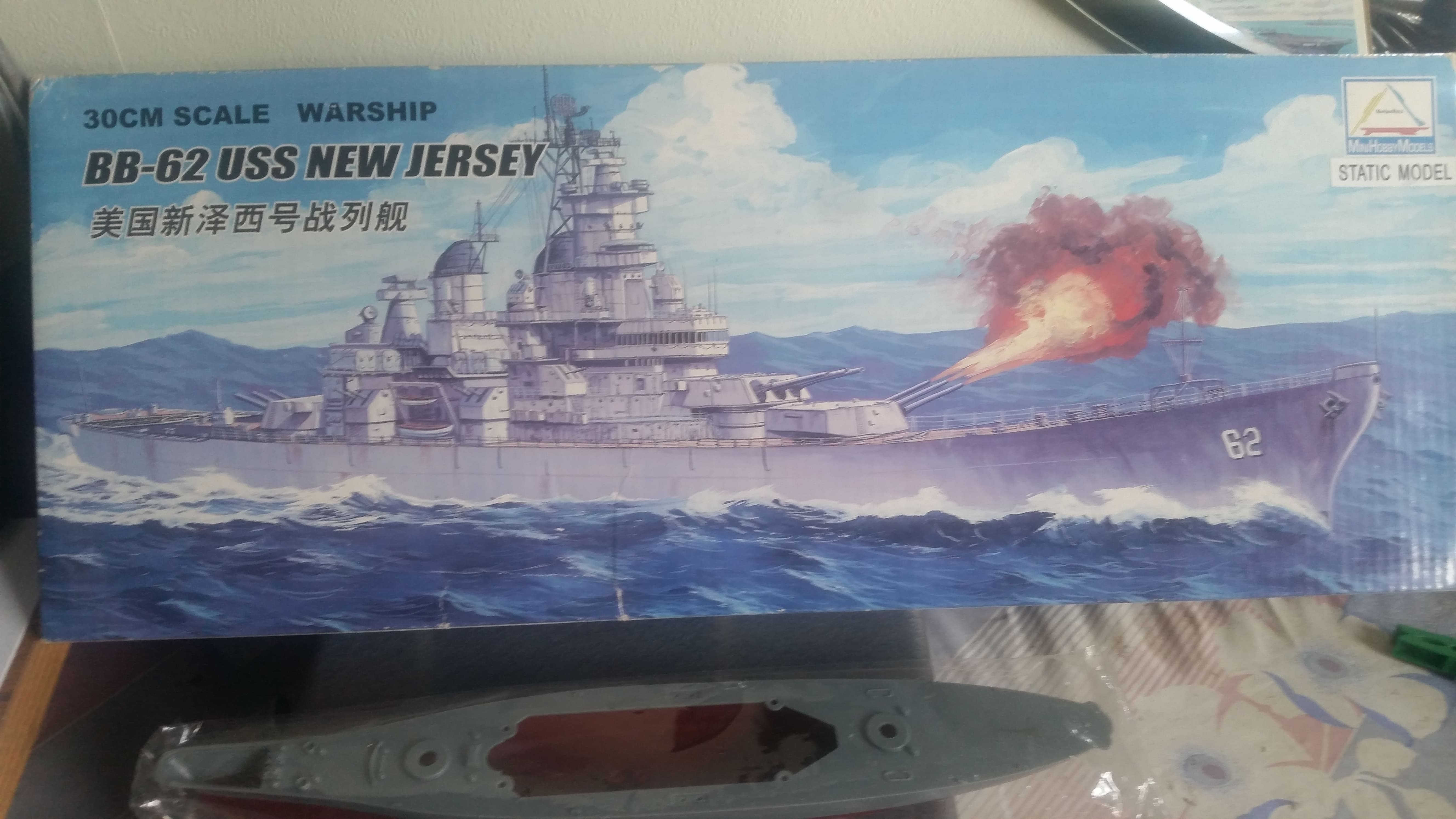 Demnächst wollte ich den Bausatz einer U.S.S. New Jersey beginnen. Das Modell ist von der Firma Mini Hobby Models und augenscheinlich aus China. Als Maßstab steht nur Scale 30 cm drauf. Die Bauanleitung ist minimalistisch und Farbvorschläge werden keine gemacht. Das bedarf also besonderer Recherche. Mal sehen was ich daraus machen kann. Gruß Ingo Demnächst mehr über das Schlachtschiff.