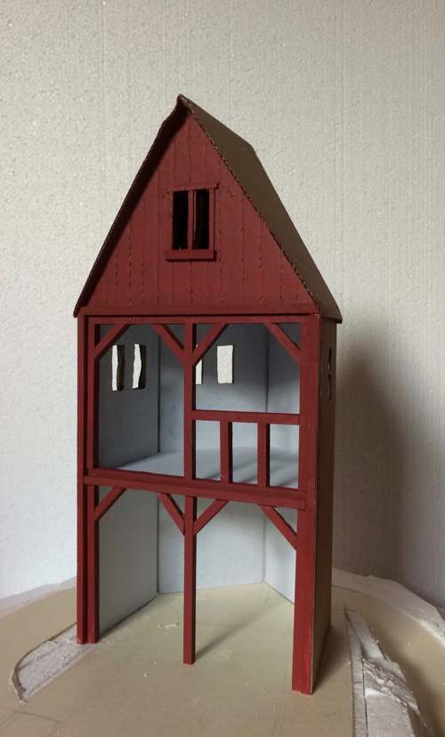 Weil das Stallgebäude von den Proportionen her nicht überzeugte, erfolgte eine Neukonstruktion mit geändertem Grundriss und Dach.