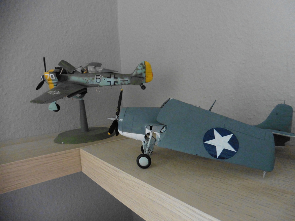Danke für die freundlichen Worte . Die Wildcat ist kein schönes anmutiges Flugzeug aber ganz schön fett . hier ein kleiner Größenvergleich zu ner Messerschmitt und einer FW 190
