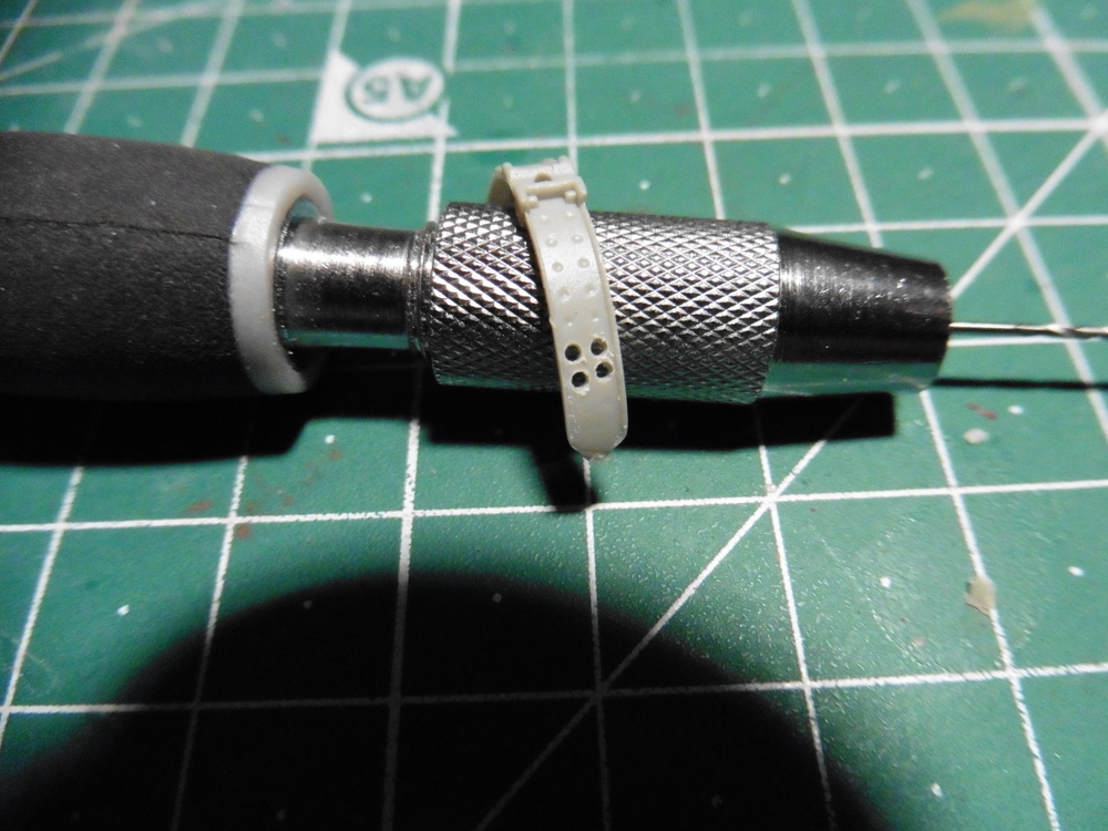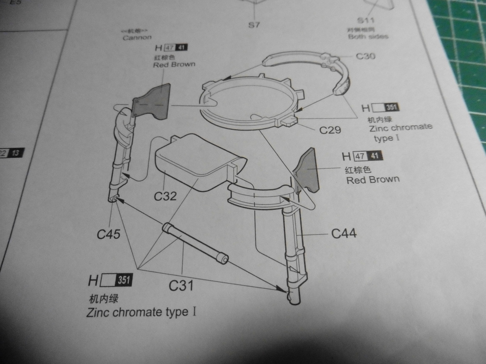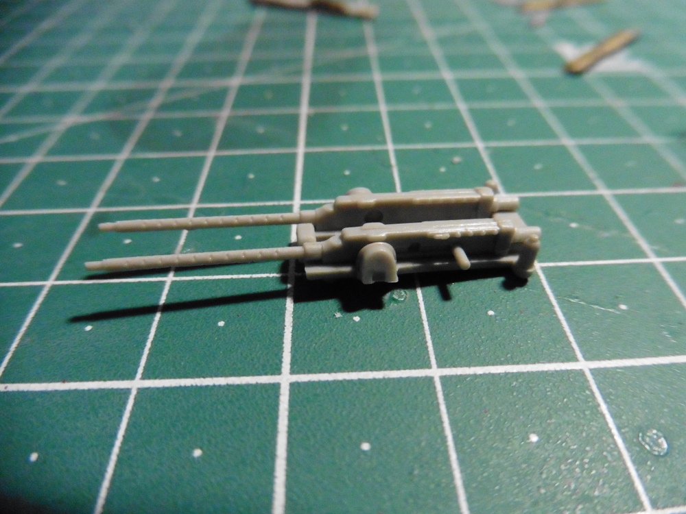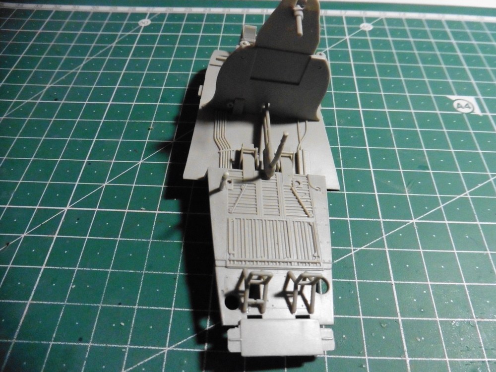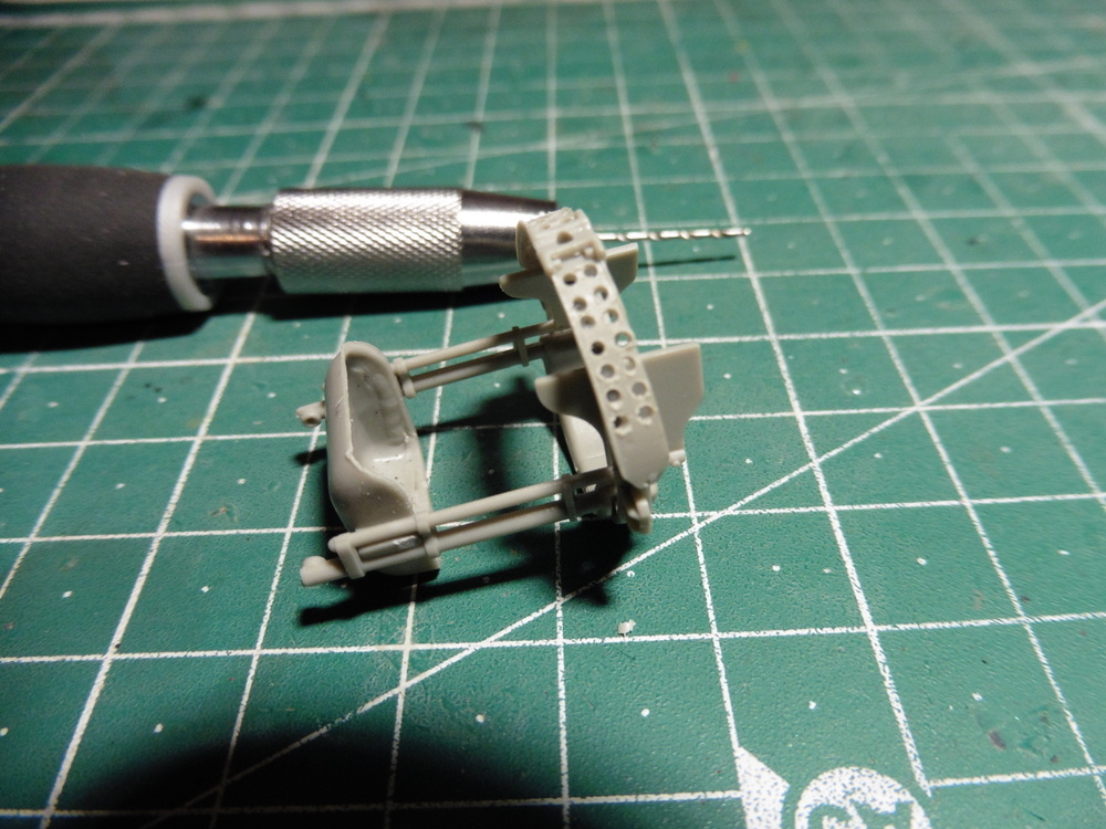 Die Sitz- Steh-Gondel war einfach . Die Halterung des Doppel 7,62 Geschützes war nur angedeutet gelocht . Ich habe dann mit einem Handbohrer die Löcher nachgearbeitet war ziemliche Fummelei war .