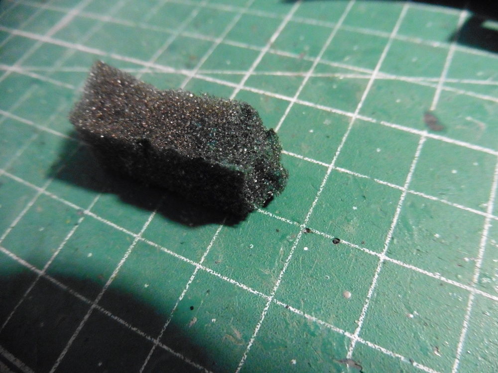 Als nächstes wird mit einer Maskierflüssigkeit der Bereich mit einem Pinsel ( auf jeden Fall keinen Guten benutzen , eher einen der dann weg kann ) leicht betupft. Man kann auch ein kleines stück Schaumstoff benutzen welches man vorher leicht ausgefranzt hat
