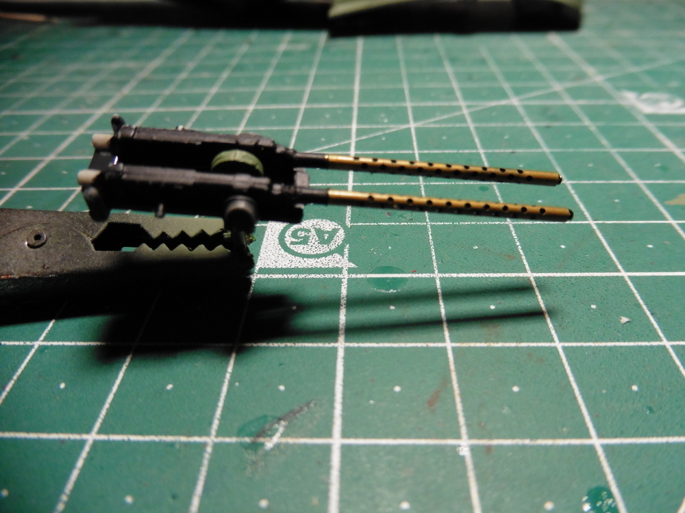 Da die MG´s ja nun mal ein Highlite des Fliegers sind ( Optisch natürlich ) fand ich diese doch echt spärlich . Zum Glück hatte ich in meinem Funduss noch 2 Bronnings Geschützrohre aus Messing in 1/32 liegen .