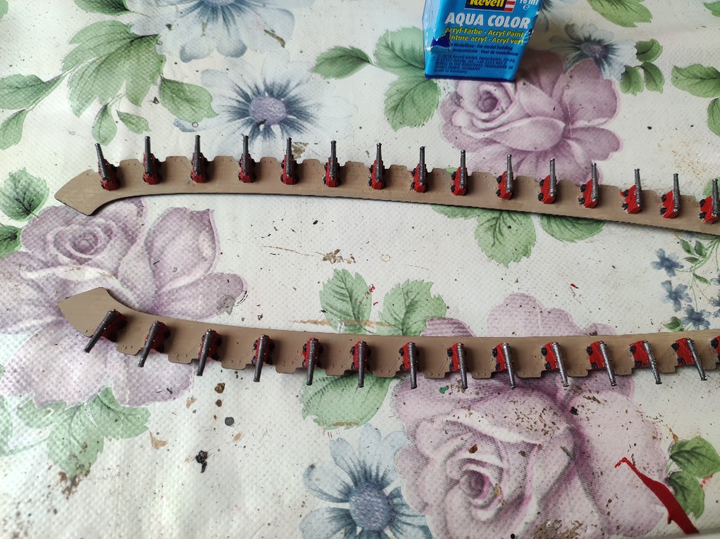 Die Kanonenfenster habe ich Karminrot gemacht
