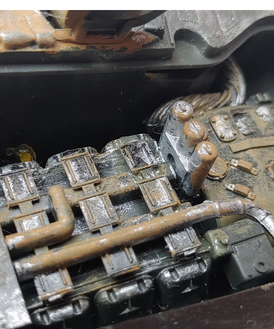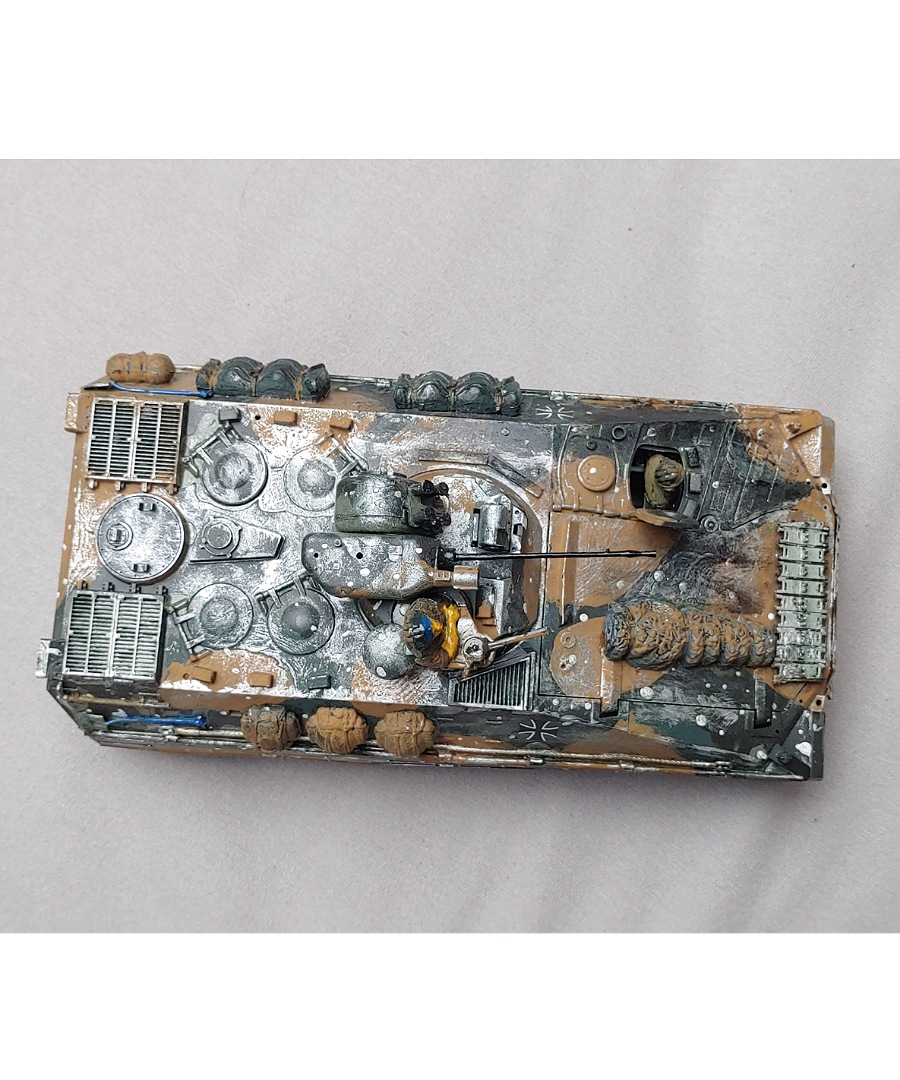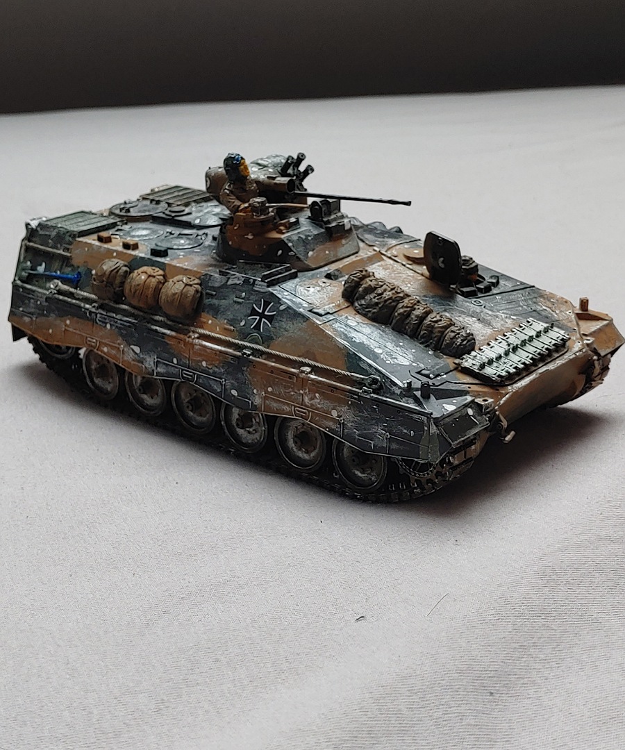 Bei dem Marder könnte ich mich fragen, warum der eben so ausschaut. Die Tarnung erkenne ich beispielsweise nur zweifarbig. Ich erkenne nur braun uns schwarz. Grün geht komplett unter. Dann hast Du da mit silber drüber gemalt? Warum? Was hast Du versucht oder was war der Hintergrund? Ich dachte erst, es ist vielleicht ein wenig Wintertarnung. Spiegelt mir jedoch zu arg.