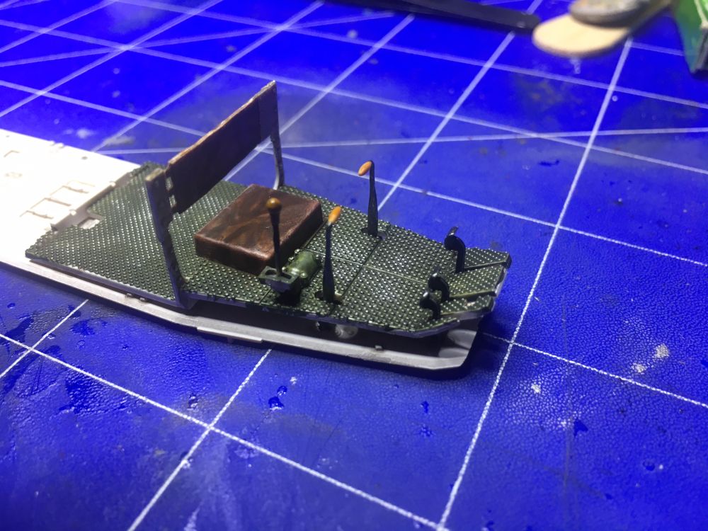 Den Fahrerplatz möchte ich später geöffnet darstellen. Daher werde ich die Klappen provisorisch geschlossen einsetzen, um alles von außen stimmig lackieren zu können. Hat jemand einen Tipp, womit man die Teile anheften kann ? Maskierflüssigkeit hat leider nicht gehalten.