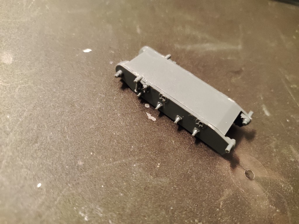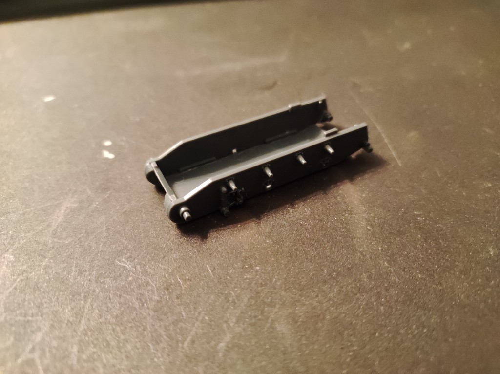 Nachdem die kleinen Laufrollen oben angebracht wurden, war das Laufwerk soweit durch. Nun durfte diese...ja was ist das eigentlich (?)...angebracht werden.