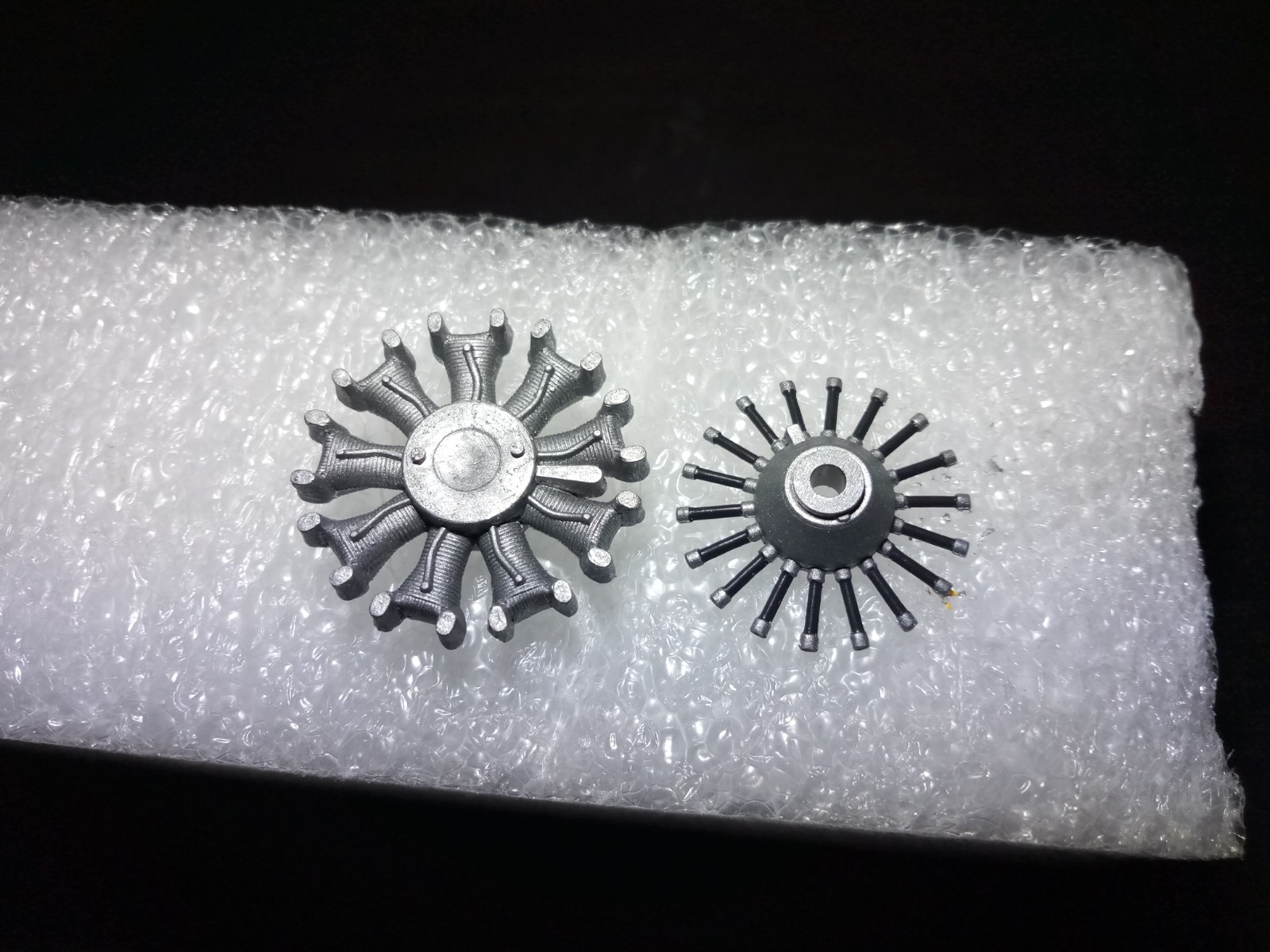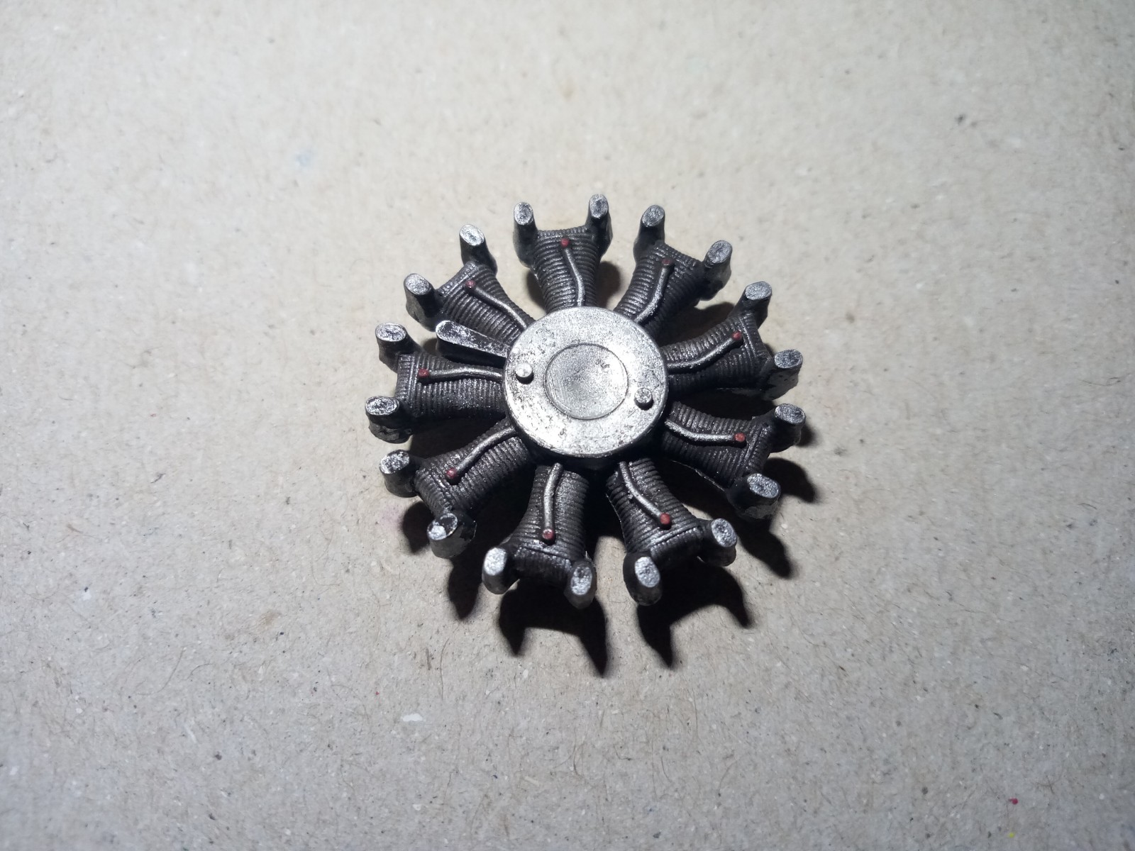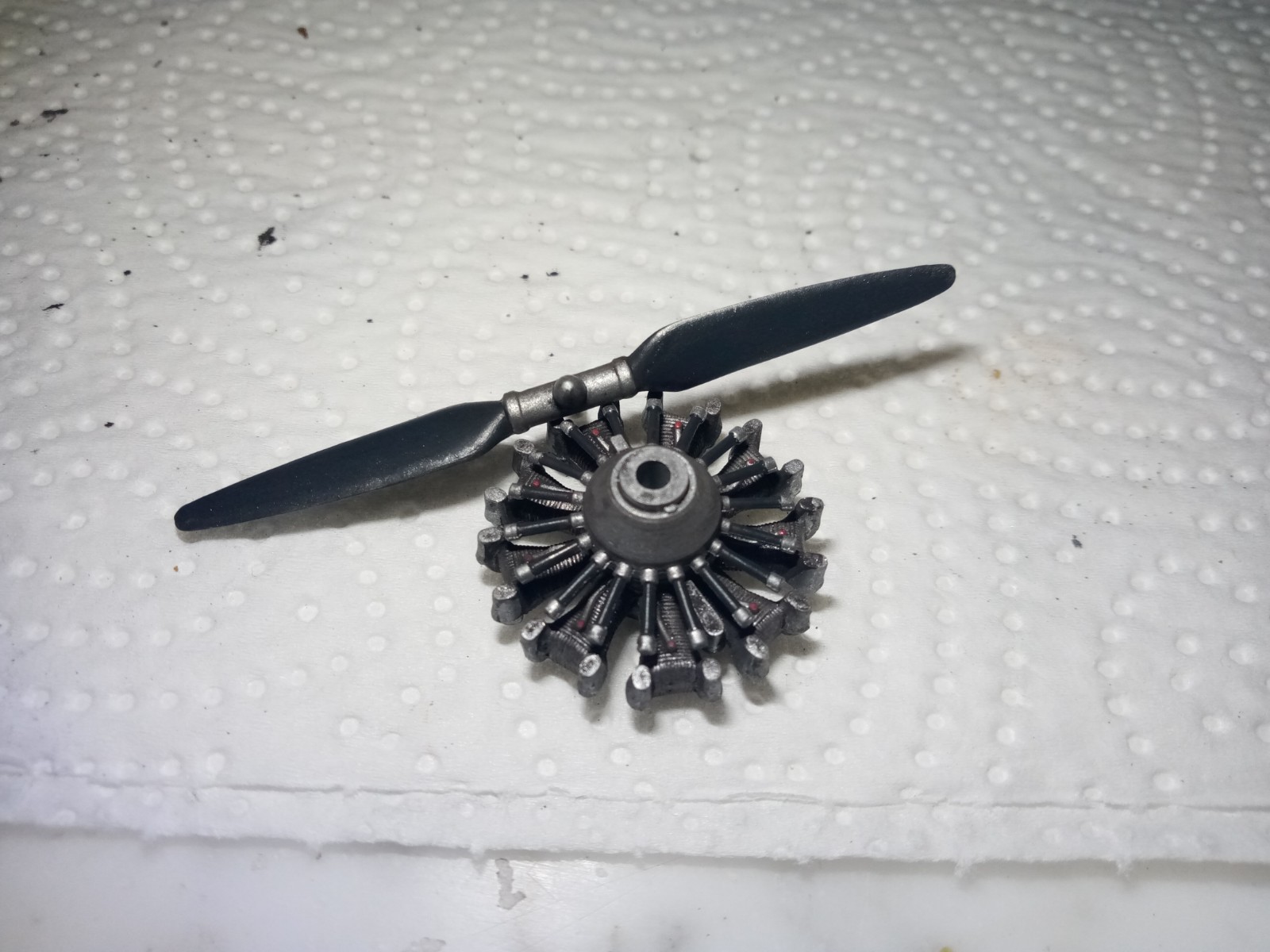 Wie Teile des Sternmotors, die Räder, Propeller und die Bomben.
