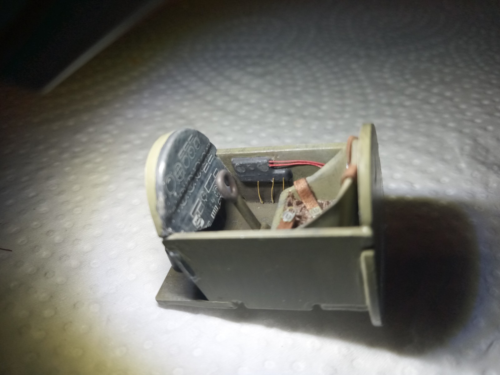 Ein paar bemalte Kupferdrähte wurden ebenso angebracht, als Verkabelung.