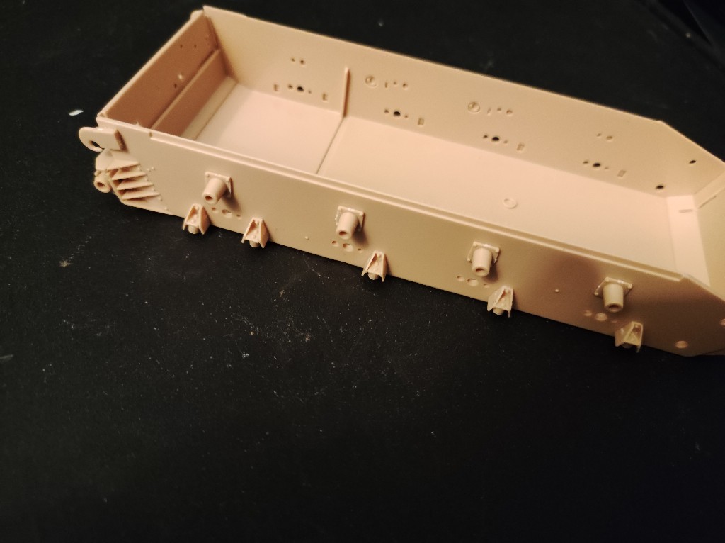 An der Front ging es mit zwei weiteren Platten weiter. Hier mussten die Abschleppösen noch einmal angeklebt werden