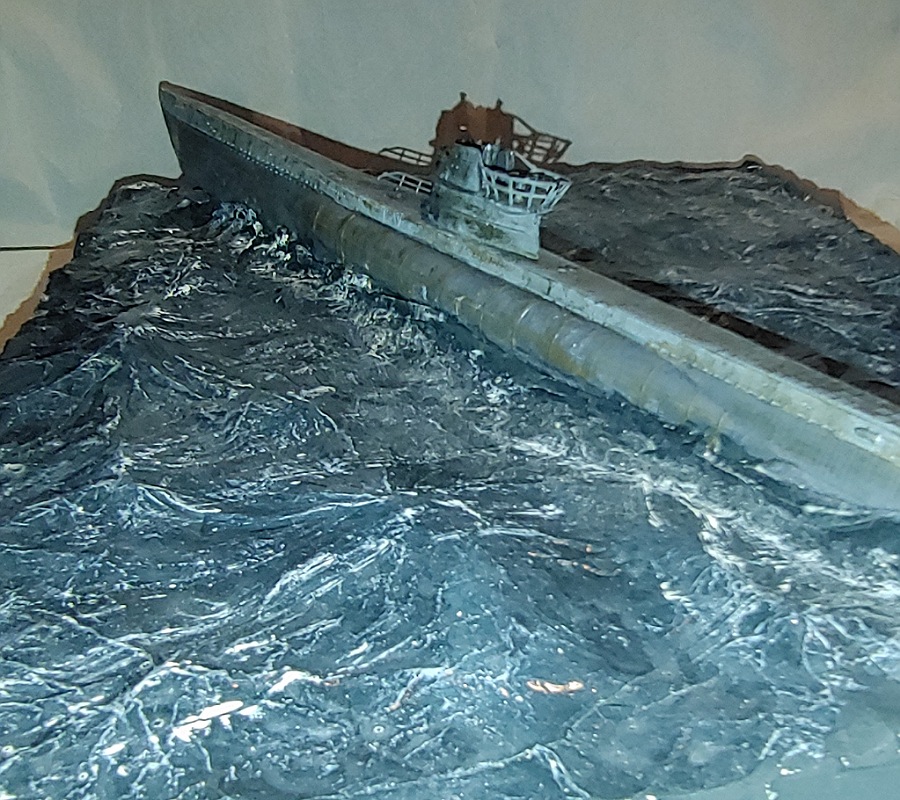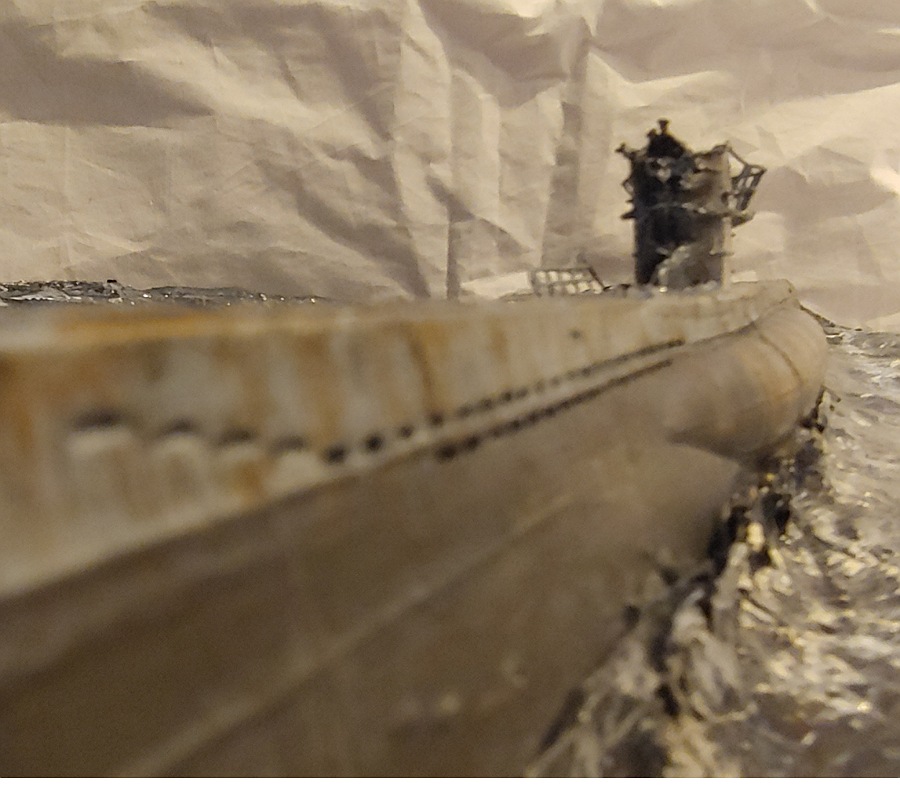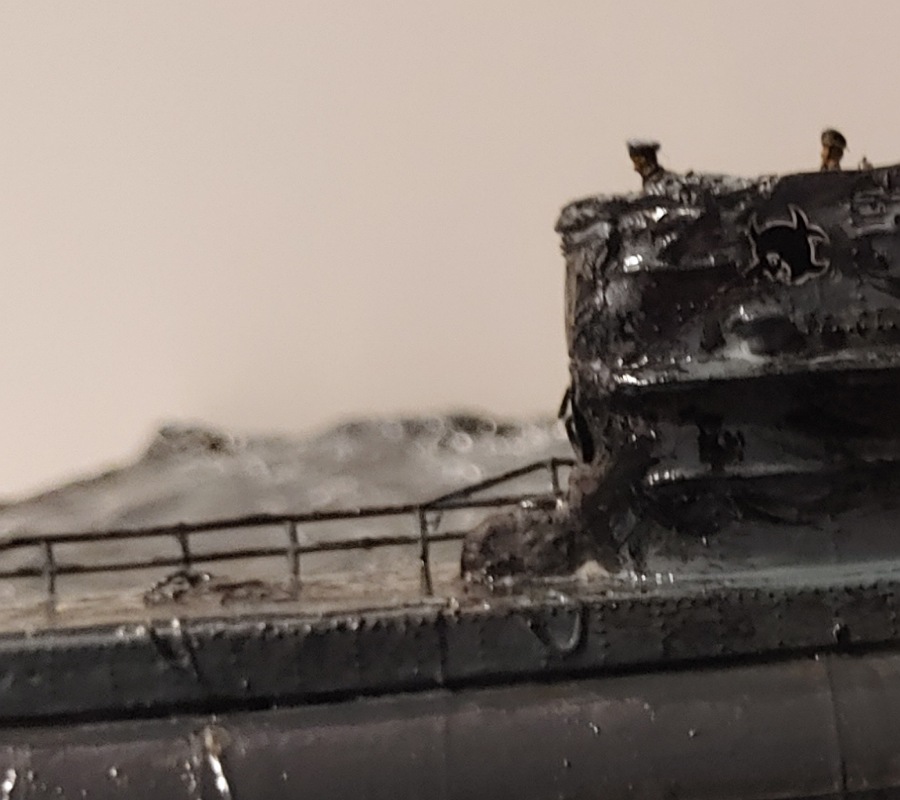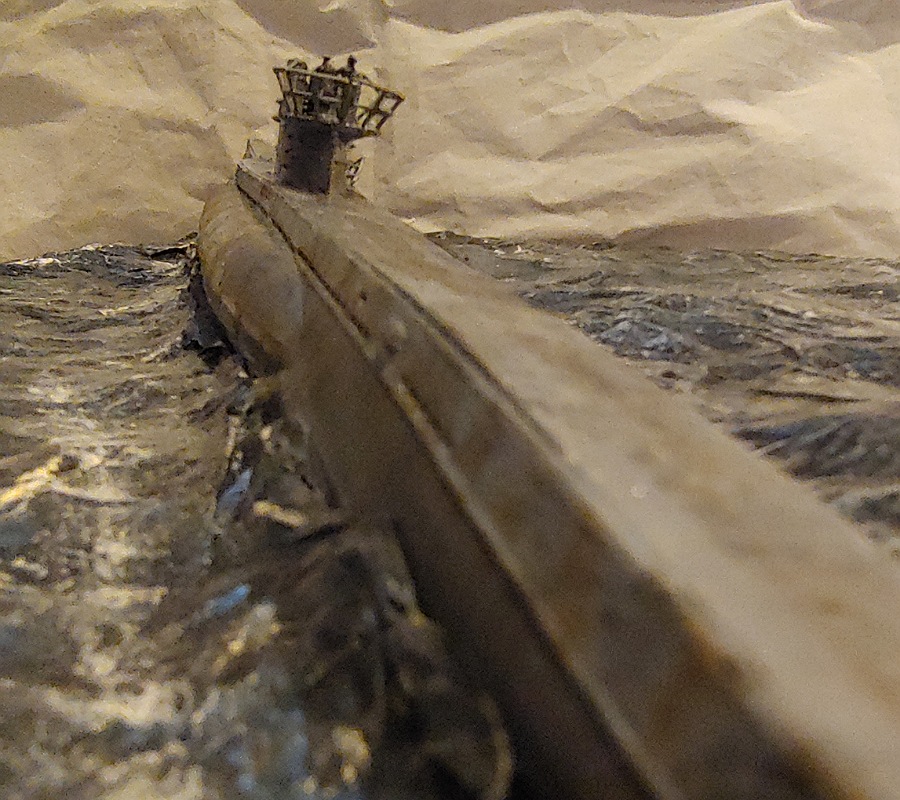 Also das hier wird ein Geschenk für meinen Vater zu Weihnachten der ein großer "das Boot" fan ist, es handelt sich hierbei um ein Diorama dass die Szene als der Motor des U-Bootes anspringt und das boot sich durch die Wellen schlägt, darstellen soll. Mir gefällt die Welle auf Steuerbord weiter vorne nicht ganz so sehr ,ansonsten bin ich recht zufrieden mit dem Ergebnis abgesehen davon dass die Wellen nicht ganz exakt so wie im Film aussehen... wie findet ihrs? Übrigens tut es mir leid dass der Jürgen Prochnow und sein 1Wo auf der Brücke so unscharf sind ich habe sie nicht schärfer hinbekommen.... (ach ja und vielleicht fällt jemandem auf das ein paar kleinere Teile am U-Boot noch fehlen, keine Angst die werden noch befestigt aber es geht hier ja erstmal ums Diorama)