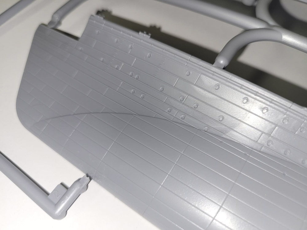 Die beiden Rumpfhälften des Modells sind wirklich sehr gut gegossen, da gibts nichts zu meckern. Absolut erwähnenswert die feinen Details, mit denen auch andere größere Bauteile aufwarten.