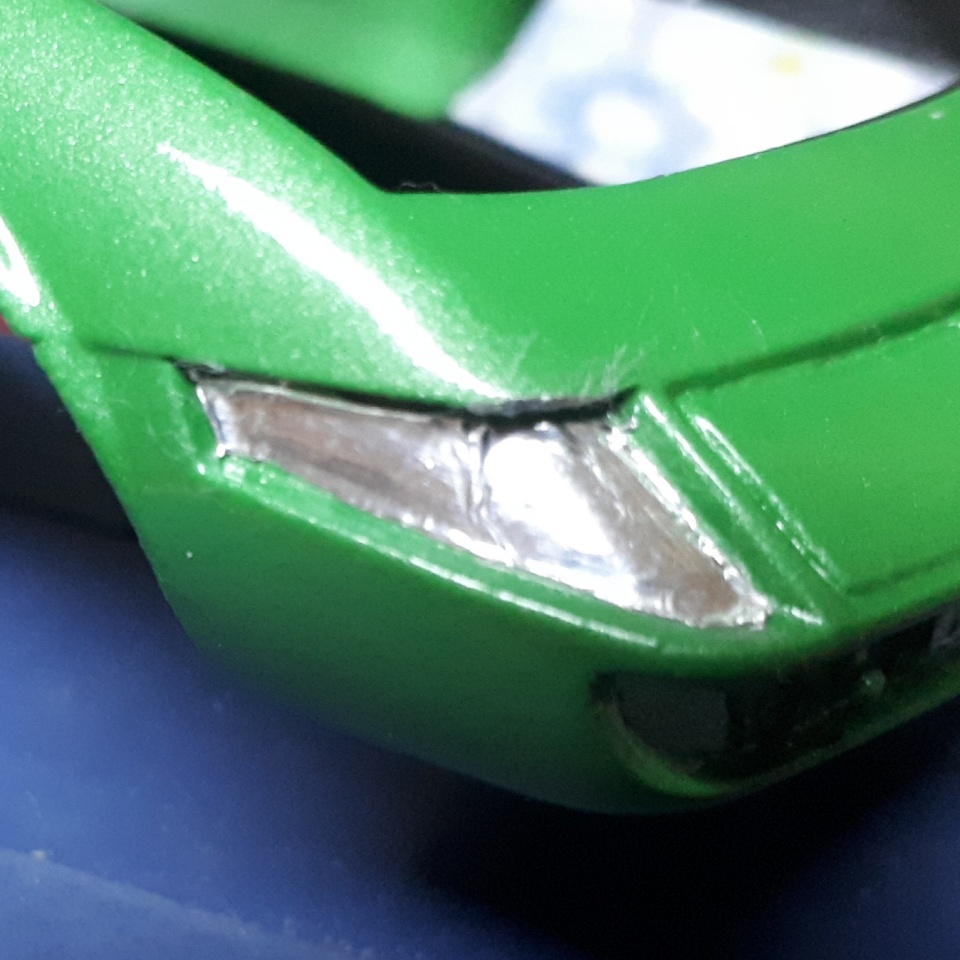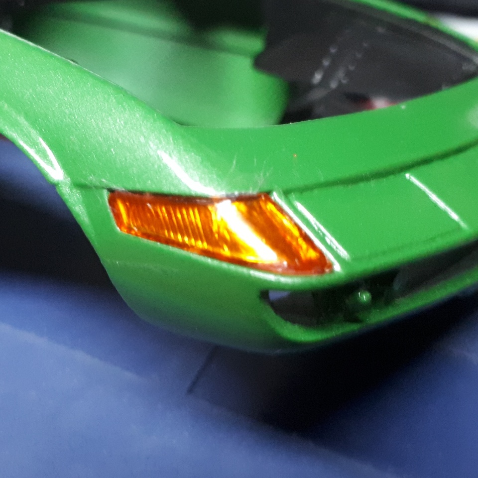Nachdem Aufarbeiten der Karosserie kam grünmetallic auf den Ferrari. Das sah alles gut aus, bis zum Klarlack, danach war Katastrophe...