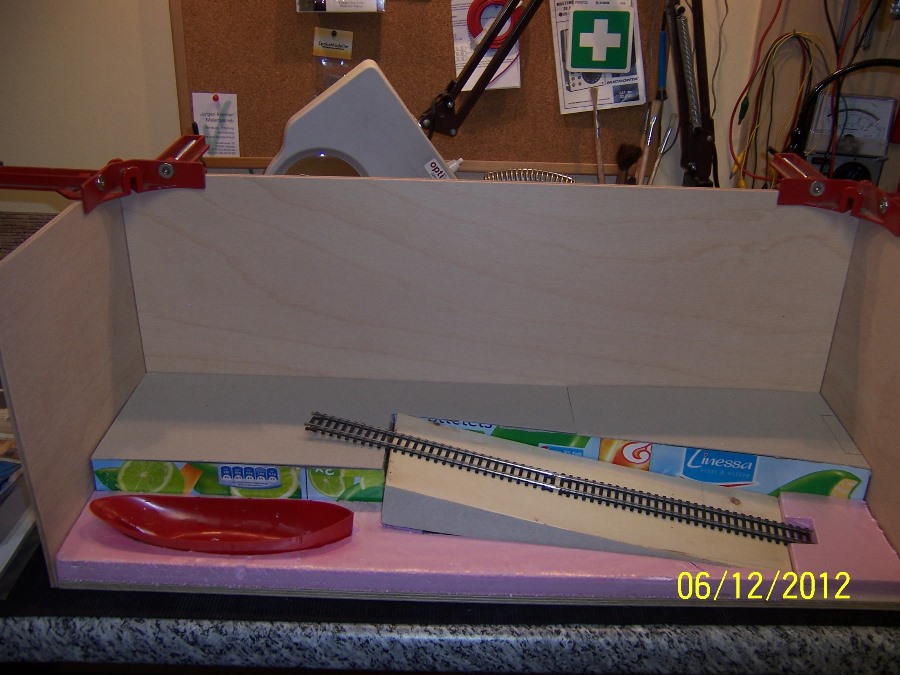 Ich nehme dafür Styrodur Platten, Maleracryl und natürlich Farben. Styrodur ist vom Aufbau her fester (feiner) wie Styropor und gibt nicht so viel Dreck beim Bearbeiten. Maleracryl ist zum überstreichen gemacht und hat den Vorteil nicht so zu „riechen“ wie z.B. Silikon.