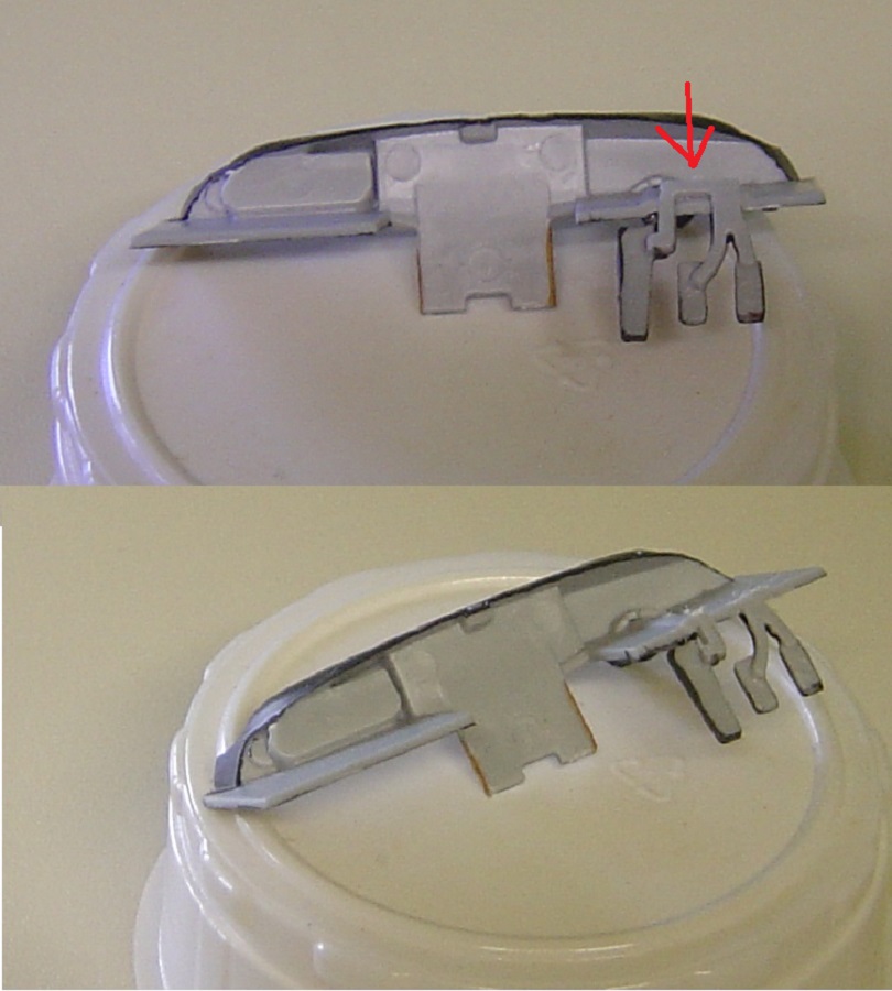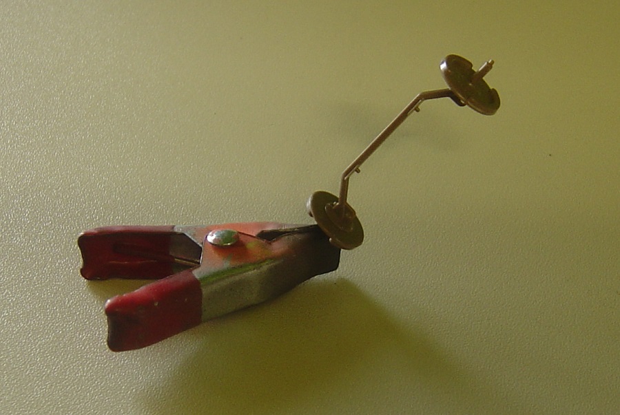 Chromteile klebe ich immer mit Contacta Clear von Revell. Um eine kleinere Menge Kleber aufzutragen habe ich den Deckelpinsel erst einmal zum Haareschneiden geschickt. Zweidrittel der Haare sind jetzt ab und das kleben geht viel besser und sauberer.