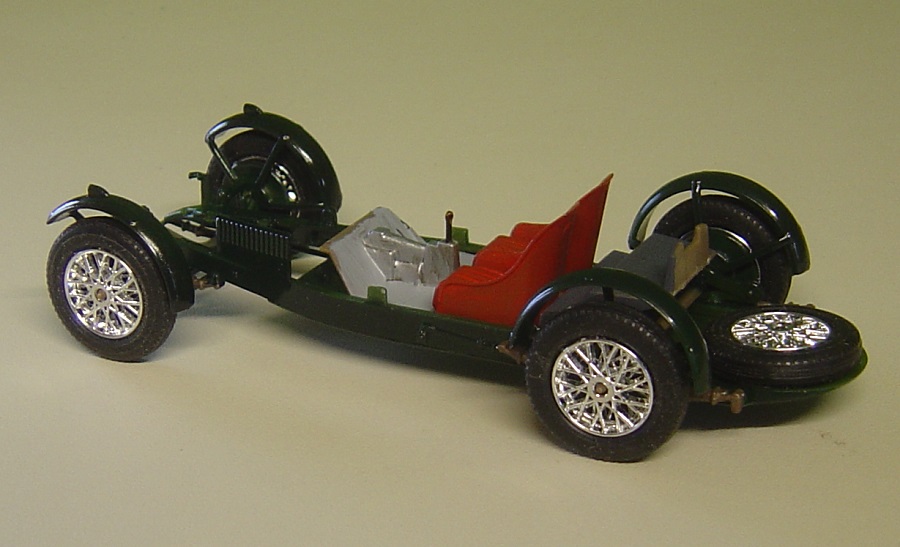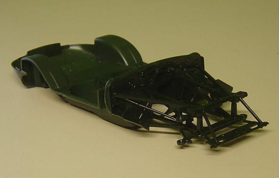 Beim Jaguar ging es mit dem Innenraum weiter. Auch hier abweichend vom Bauplan erst die Seitenteile und dann das Armaturenbrett. Es mußte auch noch die Halterung von den Pedalen entfernt werden, sonst hätte es nicht gepasst. War wahrscheinlich mein Fehler.