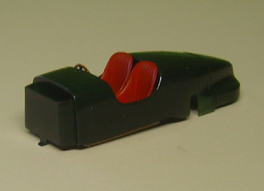 Das Deckelbild zeigt einen grünen Wagen mit roten Sitzen. Der Farben Plan zeigt einen blauen Wagen mit grauen Sitzen.