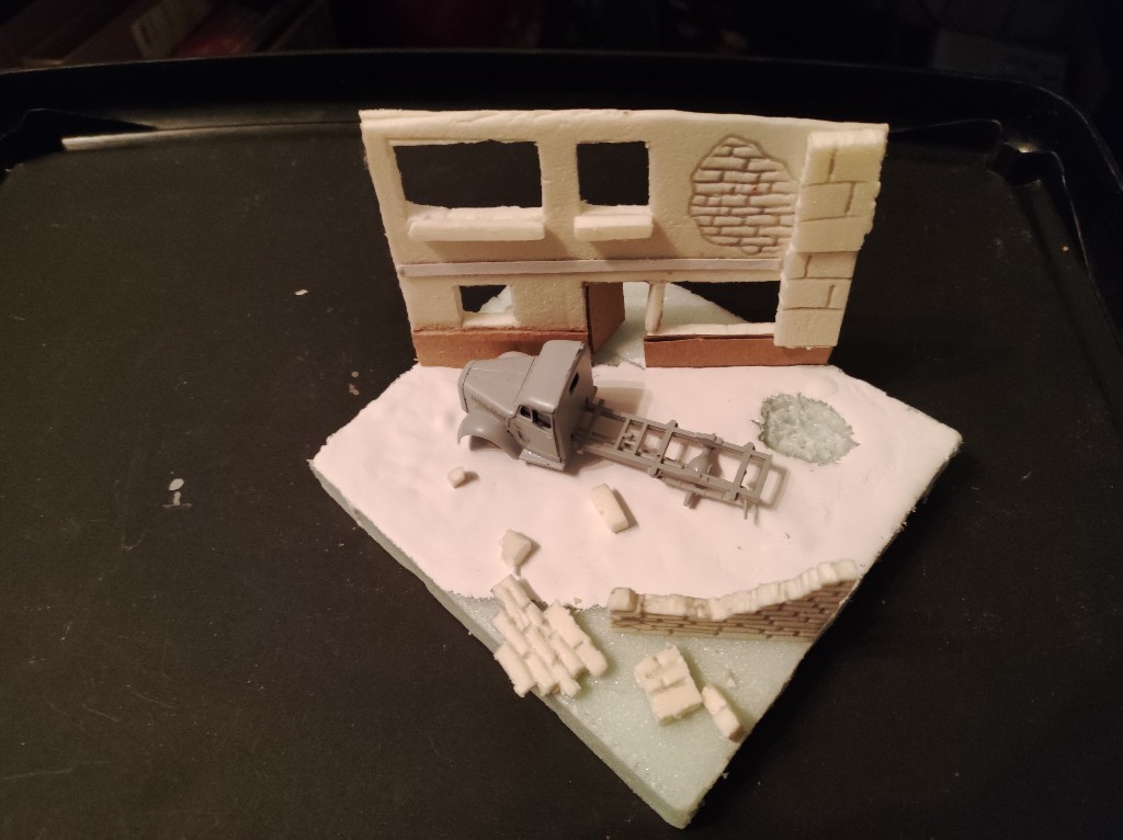 Mit Styrodur habe ich schon eine grobe Dioramaplatte zusammen geschustert