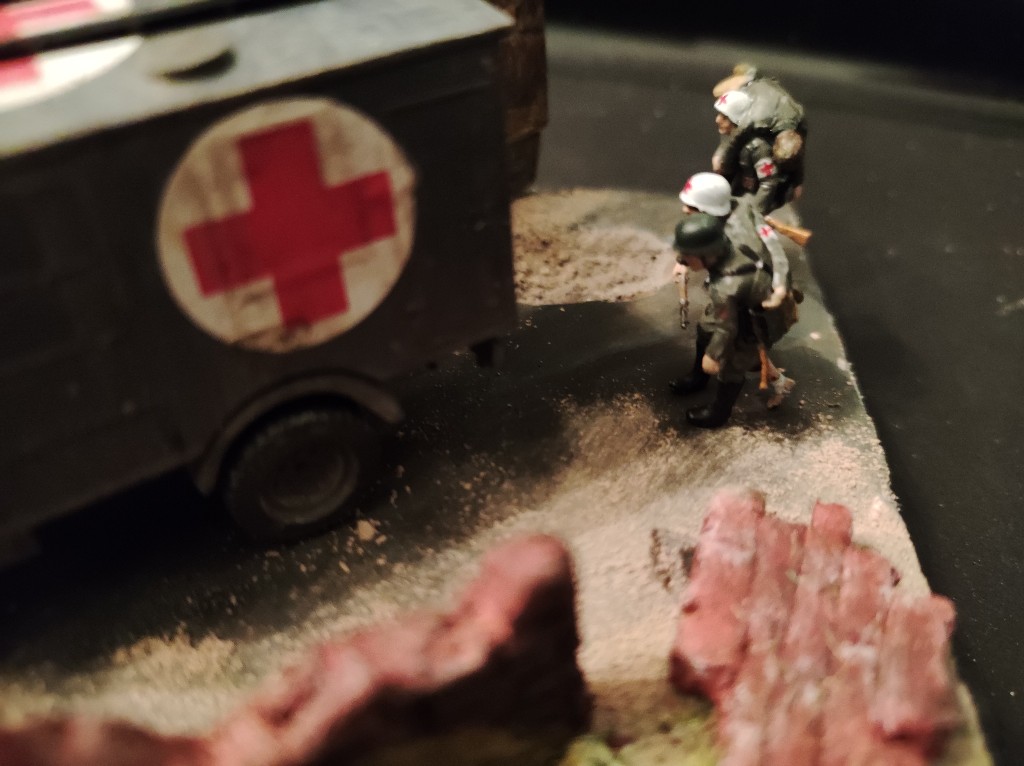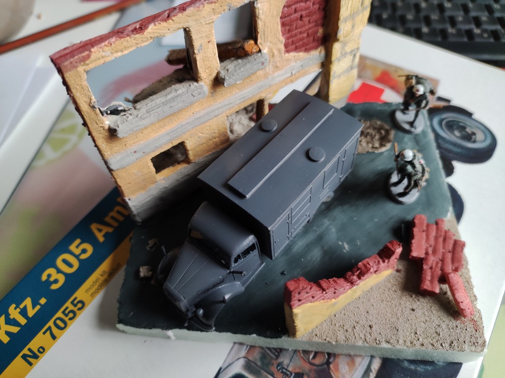 Doch was solls werden? Ich bin aktuell dabei diesen LKW in der Schlacht von Sedan 1940 darzustellen, wie er am Verbandsplatz zwei Soldaten abholt.