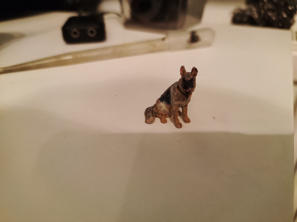 Der Schäferhund war schnell gebaut. Man müsste darauf achten die Ohren nicht zu verlieren. Grate und Spalte waren an der Tagesordnung, insbesondere der Kopf hat ziemliche Lücken hinterlassen