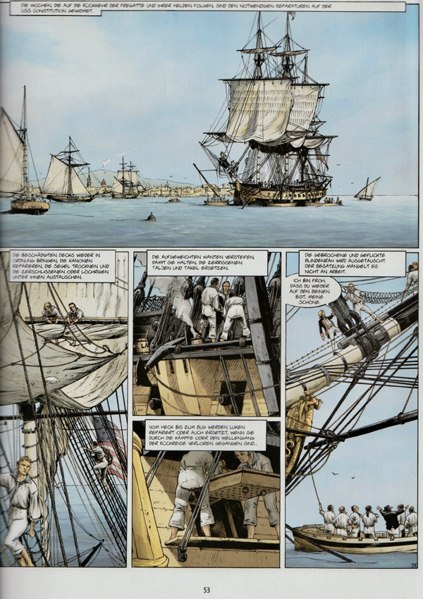 Dem Illustrator Frank Bonnet gelingt es auch im 2. Band USS Constitution uns ein atmosphärisch authentisches Bild der damaligen Seefahrt zu vermitteln.