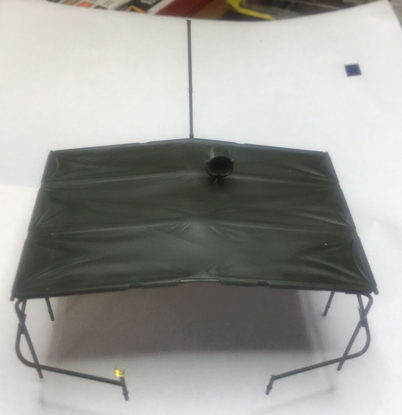 Das Verdeck ist jedoch fertig geworden. Es fehlt nur noch das "Glas" vor dem Scheinwerfer.
