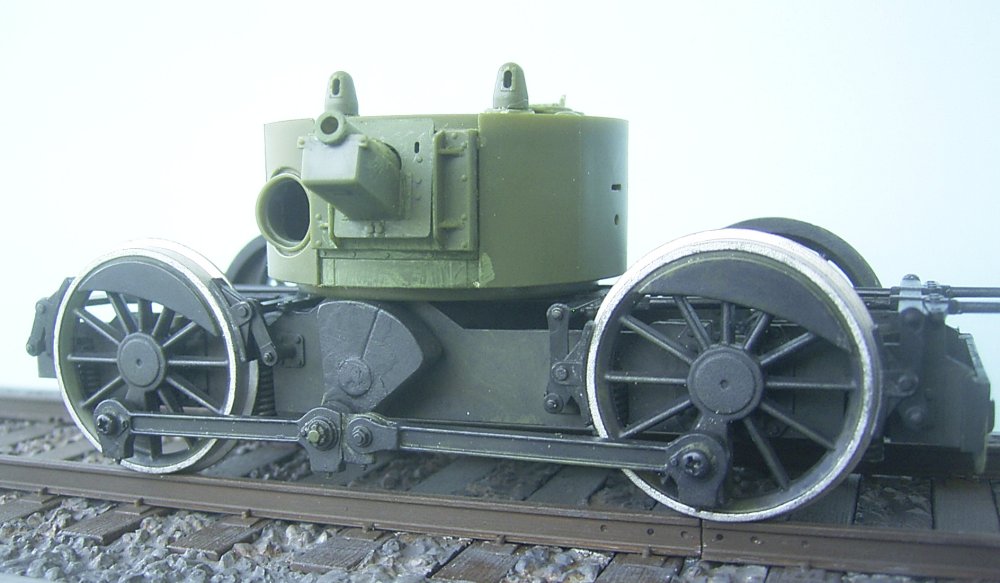 Erinnert mich irgendwie an einen T28-Turm. Fehlt da nicht ein Aufbau zwischen Turm und Fahrgestell? Die Geschützbedienung muss ja sonst quasi mit dem Hosenboden auf den Schwellen gesessen haben... Wo soll die Munition gelagert werden?
