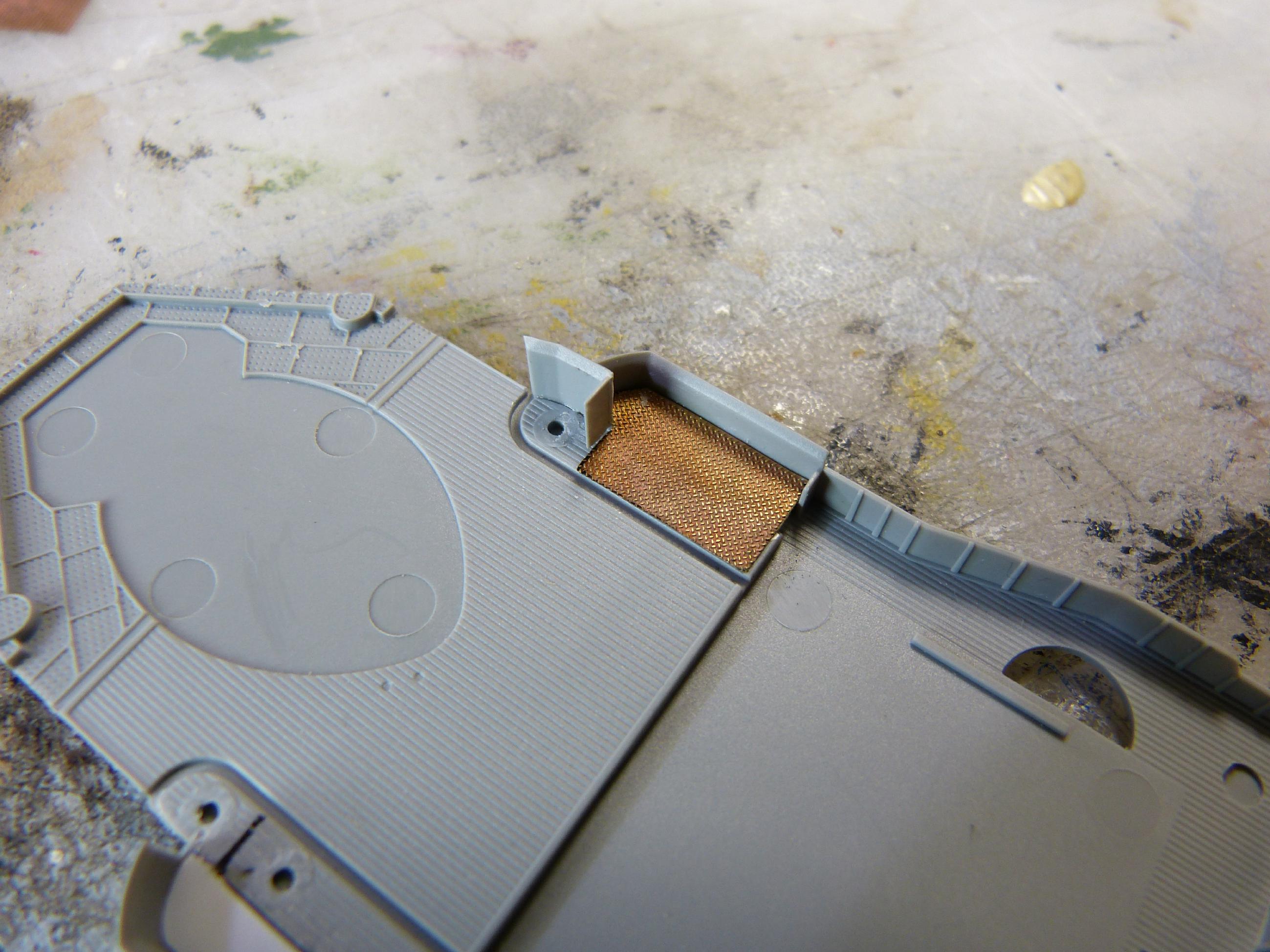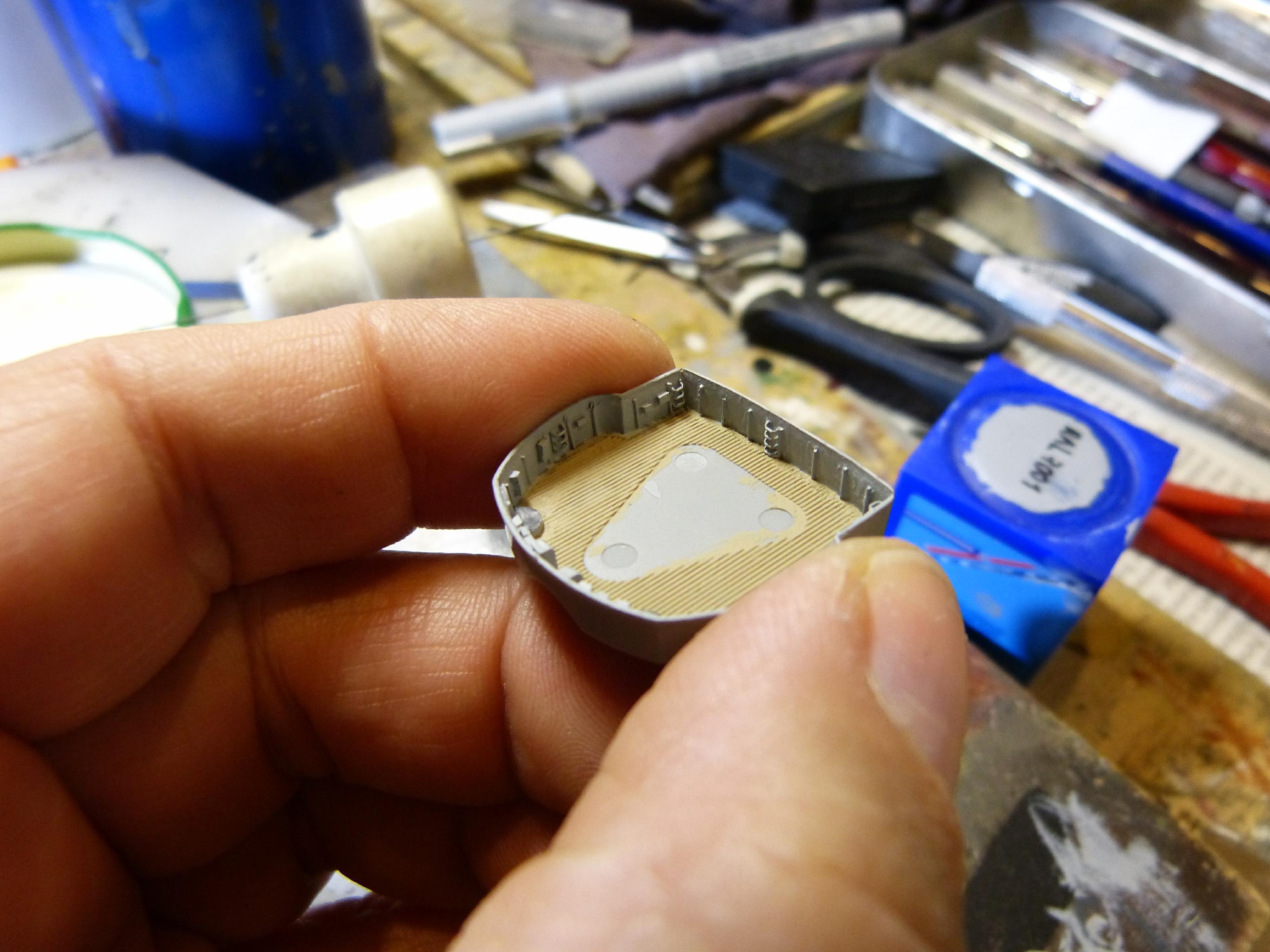 Aus dem dünnsten Plastiksheet eine Abdeckung zurechtgeschnitten und leicht nach hinten versetzt, aufgeklebt.