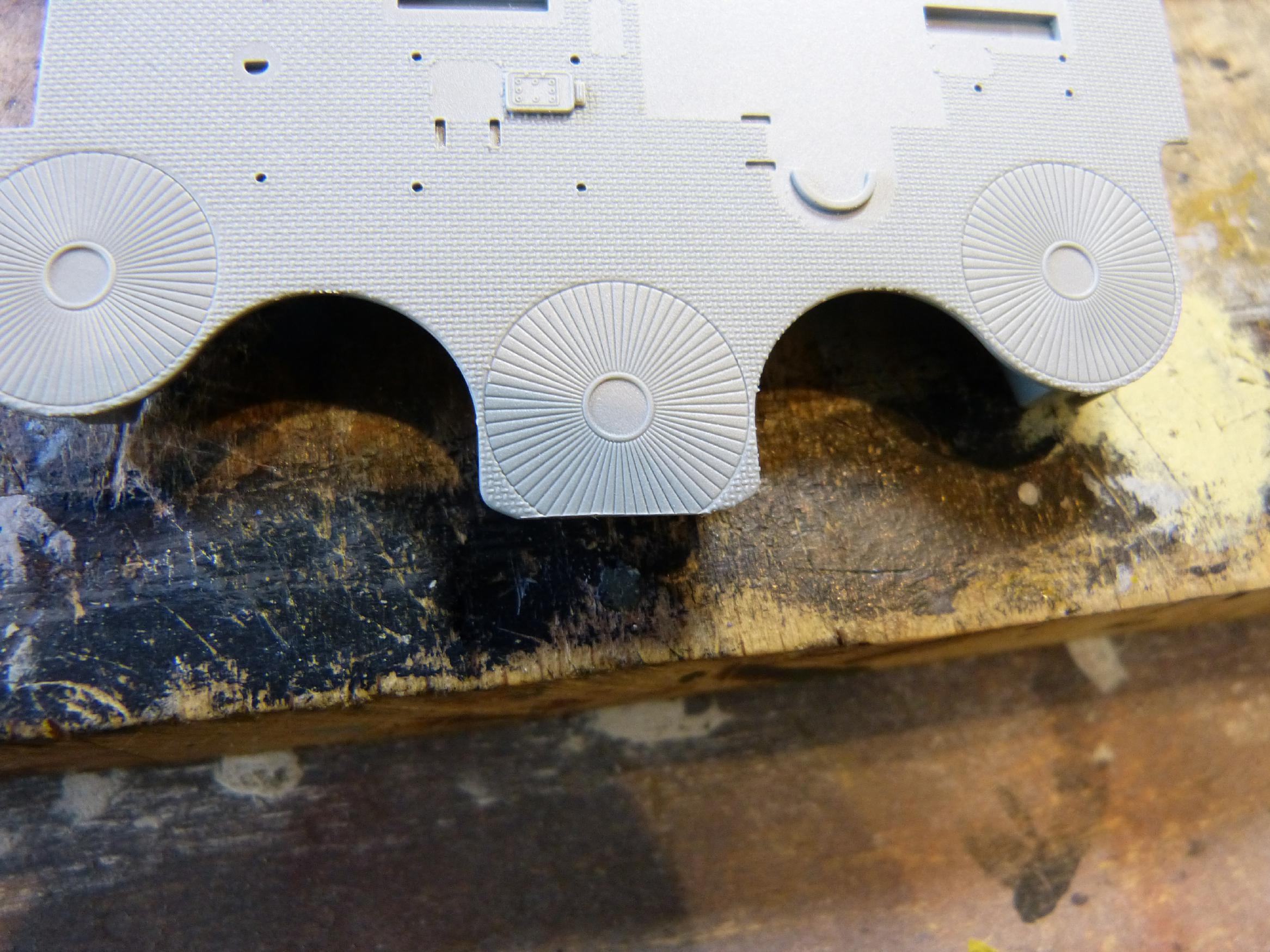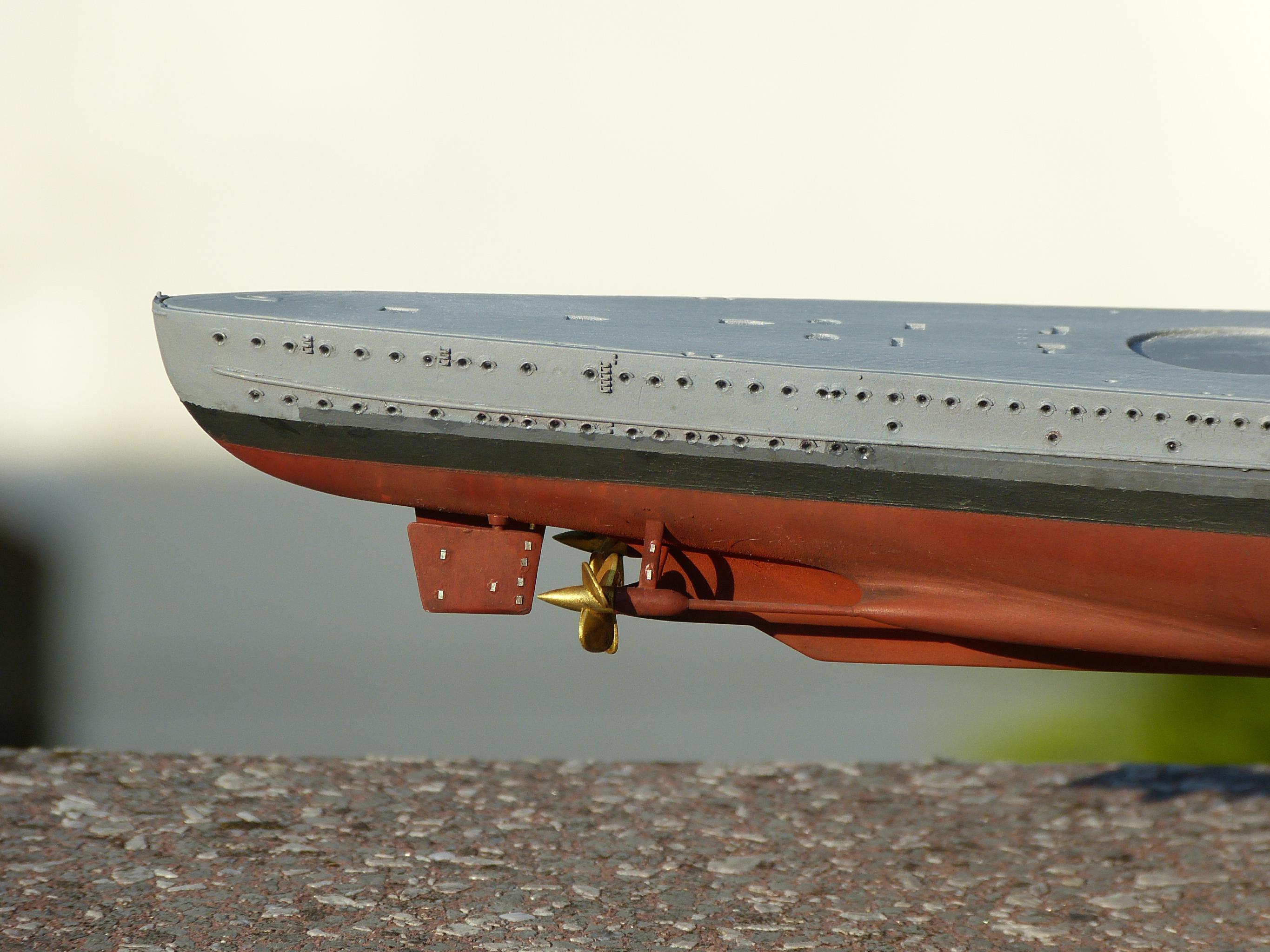 Wie bereits in der Bausatzvorstellung erwähnt, fehlt es dem Dragon-Unterwasserrumpf an jeglichen Details. Unter anderem fehlen die drei Turbinen-Kühlwassereinlässe, die z.B. bei Revell-TP/BS top dargestellt sind. Für Detailverliebte wie mich ein No-Go.
