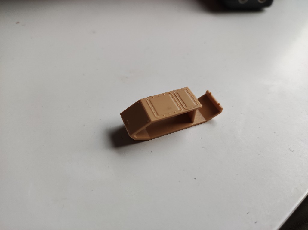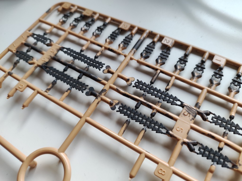 Hier waren aber ein paar Trennähte zu versäubern. Dann noch das Antriebsrad und damit war der Minipanzer schon lackierfertig.