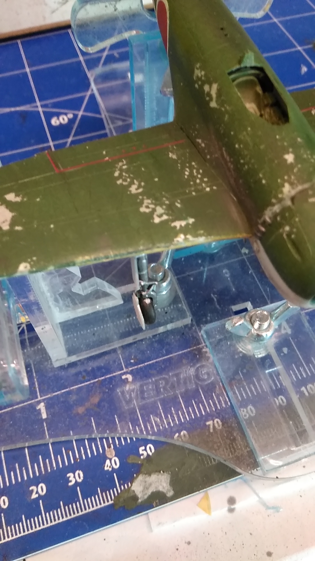 Mein Vorgehen wäre jetzt hier: die Motorabdeckung vorsichtig ablösen und normal festkleben. Natürlich kommt das aber ganz auf den Bausatz selber an und wie du es verbaut hast