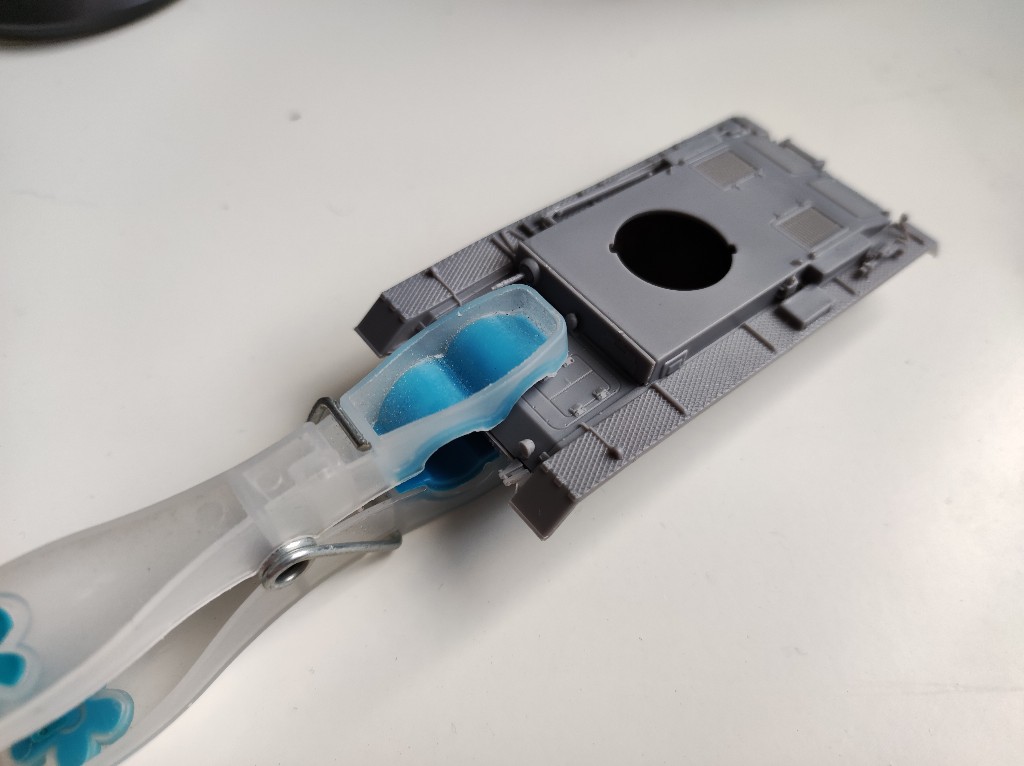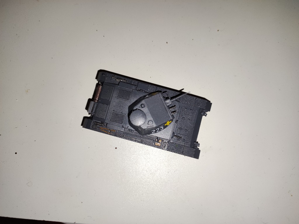 Nun noch den Turm aufgesetzt und dann ist die Panzer fertig zum Lackieren