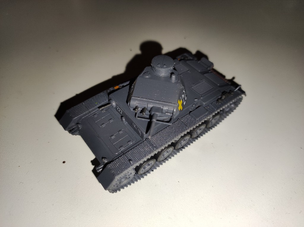Der Panzer ist schon lackiert, gut Panzergrau ist auch zügig aufgetragen