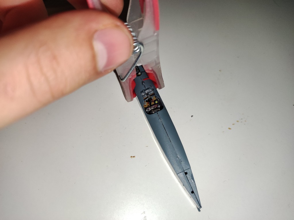 Nach etwas fummelei sind die Rumpfhälften vereinigt wurden und mit eine Klammer fixiert wurden