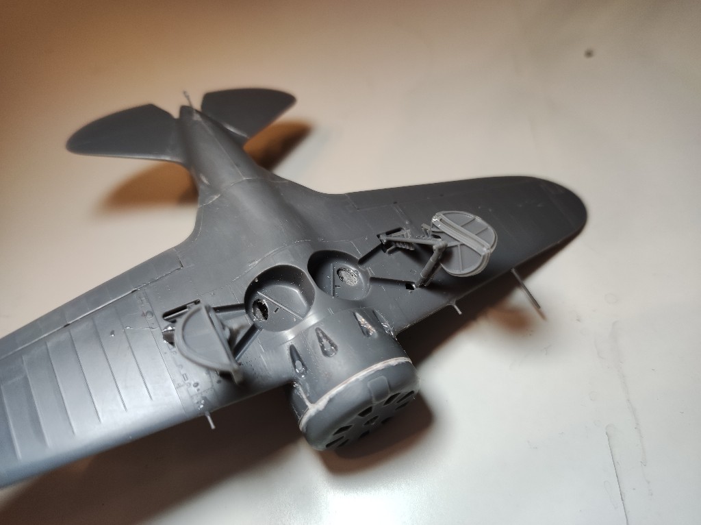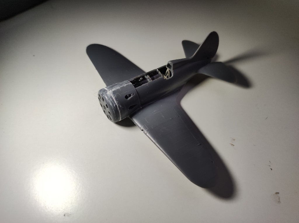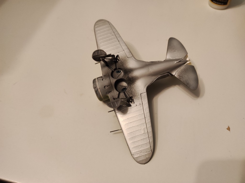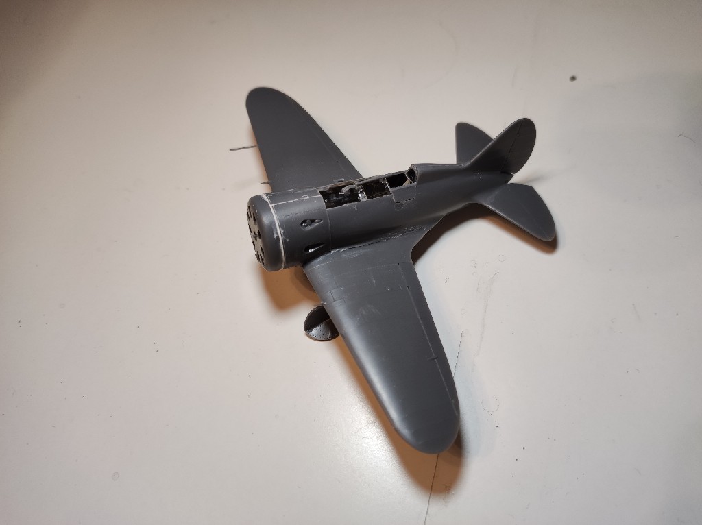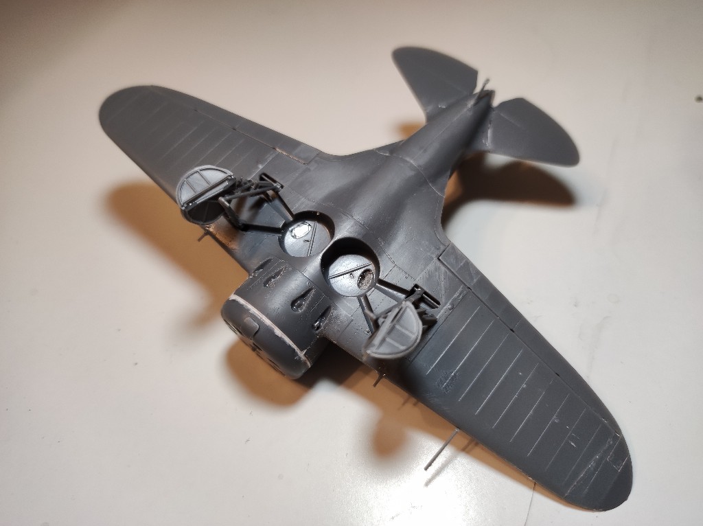 Nun habe ich begonnen an meiner I-16 zu Werkeln. Ich musste den Panzer einfach Mal bei Seite legen und hier weiter machen.dazu wurde erstmal eine leichte Grundierung gesprüht, um Unebenheiten zu entdecken und zu beseitigen.