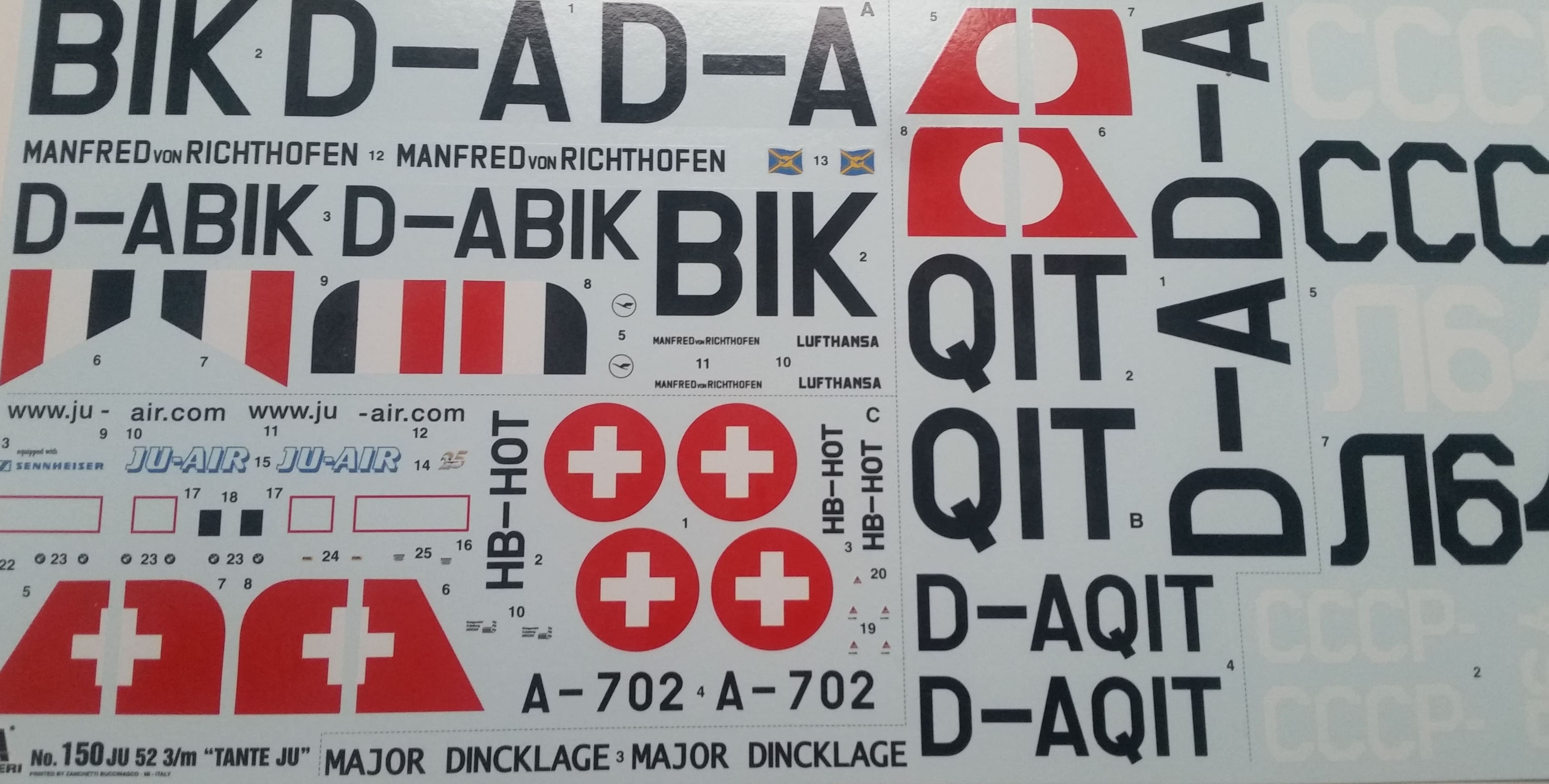 Die Decals beinhalten 4 verschiedene Versionen, allerdings nicht die Version der letzten 3 Maschinen, die für die Lufthansa geflogen sind.