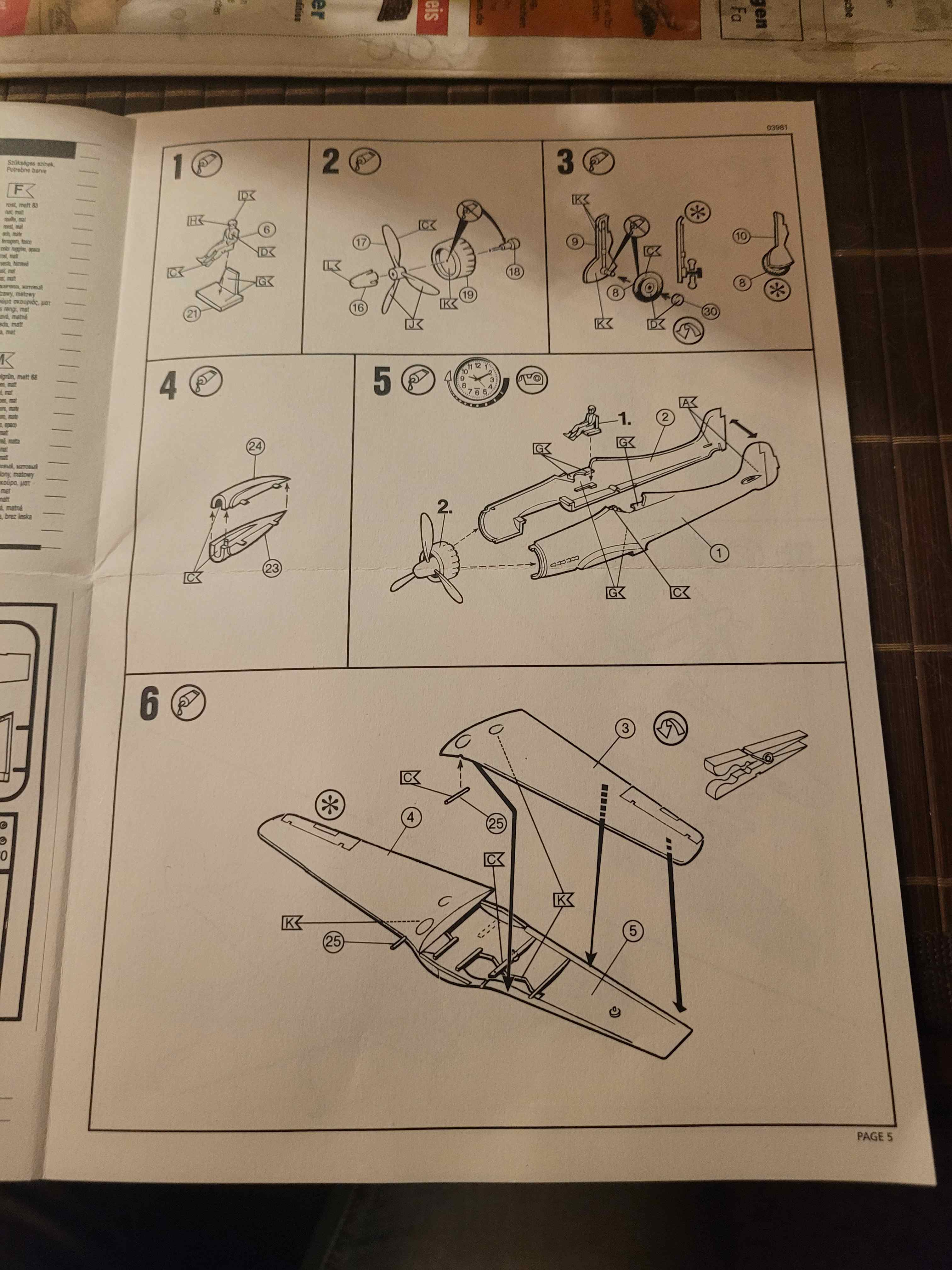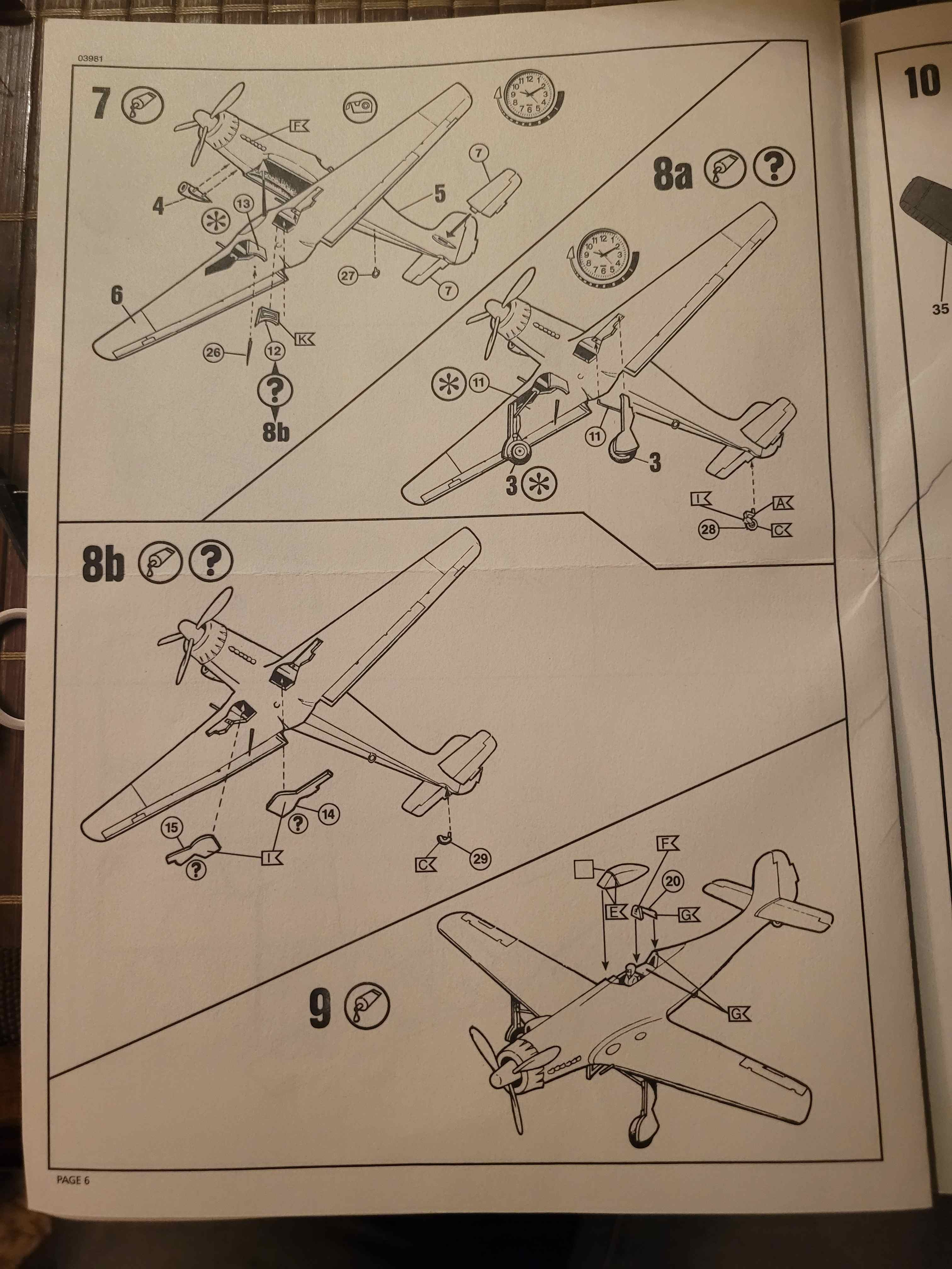 Im Tragflächenoberteil (3 und 4) werden wohl lediglich die ovalen Teile (Buckel oder Bohrungen?) bemalt. Ist aus der Bauanleitung nicht deutlich ersichtlich, ich habe den Bausatz nicht) bemalt und augenscheinlich auch die Tragflächeninnenseite. Jedoch bekommen die Tragflächenaussenseiten sowieso das Tarnmuster wie in Abschnitt 10 gezeigt. Also kann das nicht alles aluminiumfarbig sein. Das macht keinen Sinn auf der Oberfläche. Innenseite: ja.
